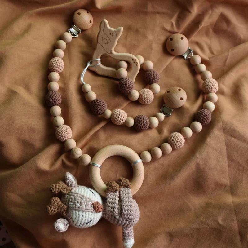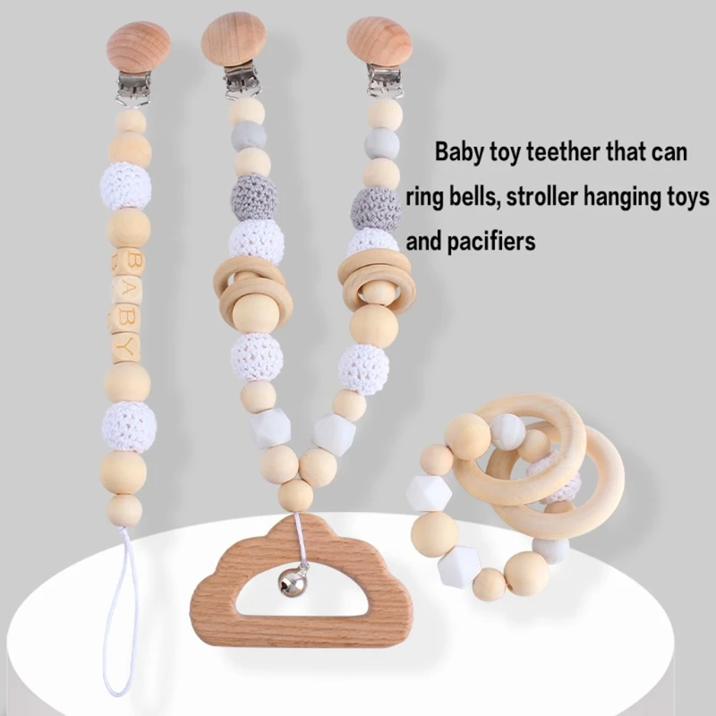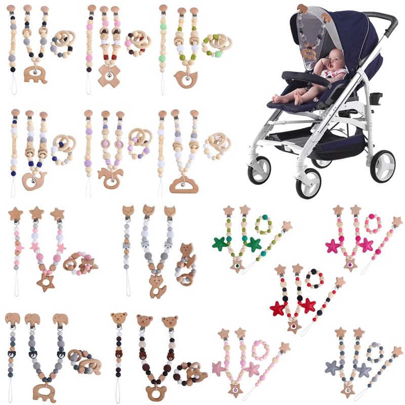 Деревянные детские игрушки-клипсы для коляски, подвесные кулоны для детского тренажерного зала, игрушки для детской коляски, погремушка для кровати, мобильные погремушки, бусины для прорезывания зубов, 1 комплект