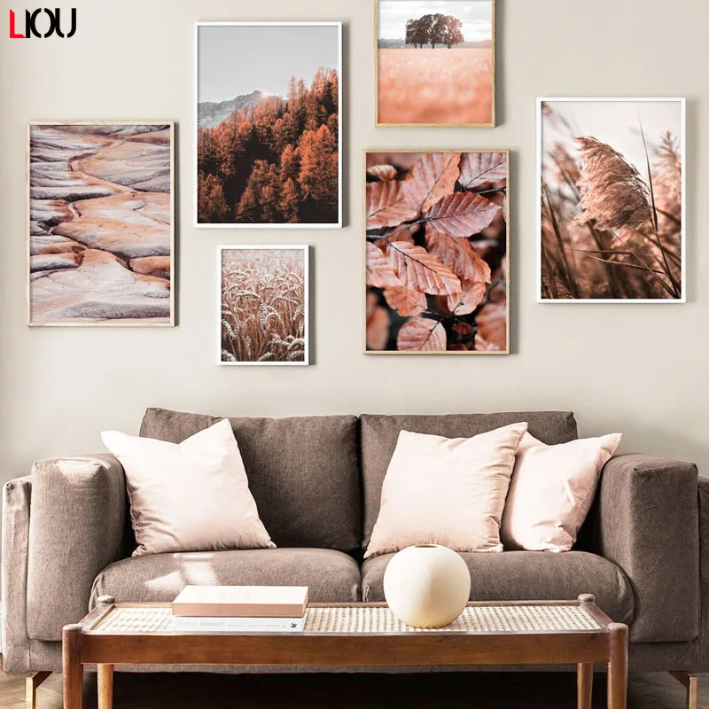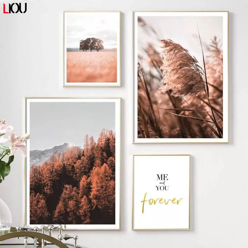Пейзаж сосна Гора лист стена искусство холст живопись скандинавские плакаты и принты стены картины для гостиной осенний Декор