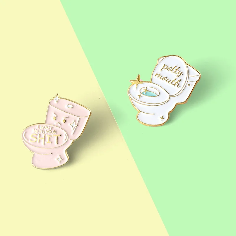 Разные дизайны, металлические броши в форме унитаза из сплава с рисунком, с Антибликовой пряжкой, для рюкзака, для женской одежды