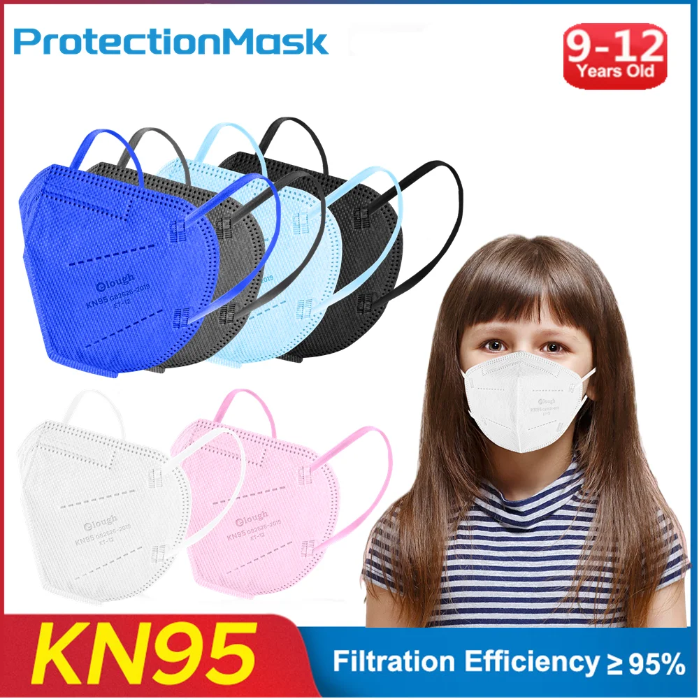 Детская черная маска для лица KN95 fpp2, для детей 9-12 лет