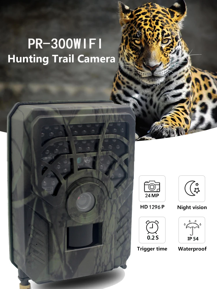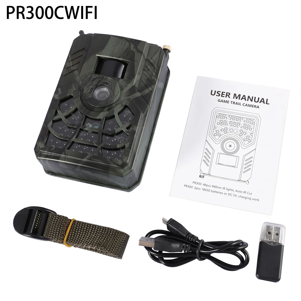 PR300 Wifi Hunting Camera 24MP Wildlife Trail Camera PIR Infrared Night Vision Wireless APP Surveillance Scouting Photo Traps