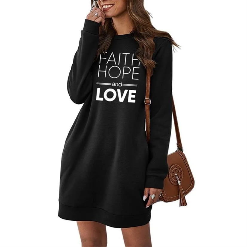 Женское платье с надписью вера и надписи, женские пуловеры с длинным рукавом для Религиозной христианской церкви, повседневный Джемпер со слоганом, толстовки
