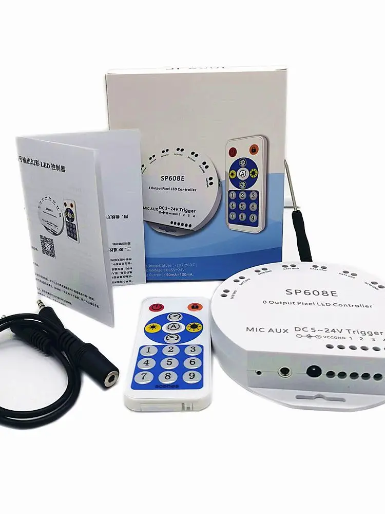 Музыкальный контроллер SP608E DC5V-24V WS2812B WS2811 WS2815 8-канальная Светодиодная лента со встроенным микрофоном, IOS, Android, Совместимость с Bluetooth
