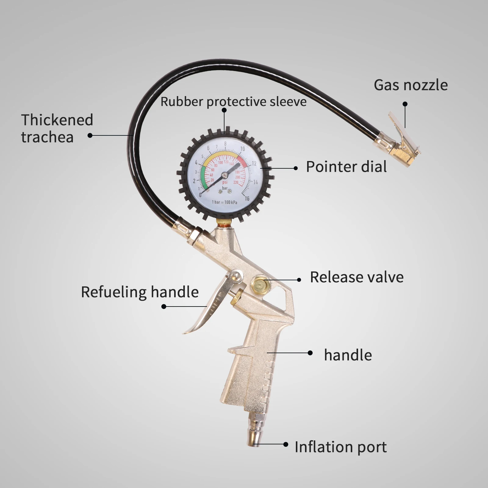 Манометр для автомобильных шин, цифровой пистолет для накачивания, с точным манометром для накачивания и быстрым воздушным разъемом