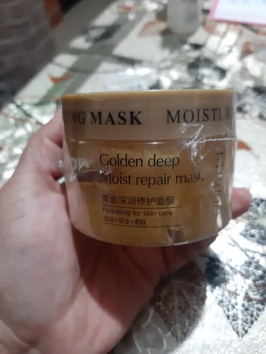 Шаг 1: перед сном Вымойте лицо и возьмите на ладони необходимое количество золотой маски.