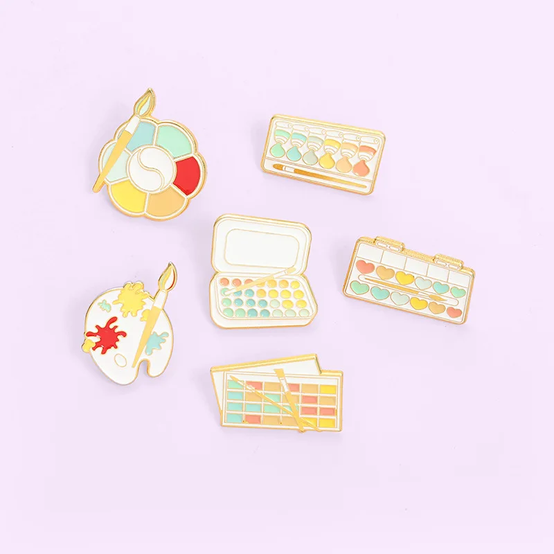 Эмалированные булавки в палитре с рисунком, кисточка, булавки для в...
