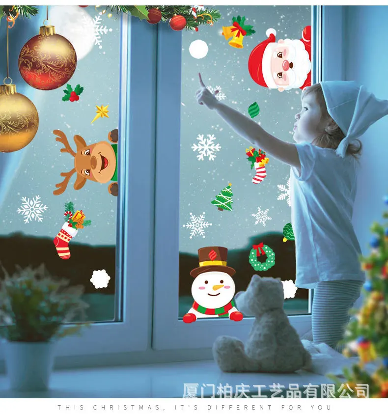 Рождественская наклейка Санта-Клаус Рождество Лось Снежинка безликая кукла Наклейка на окно с Рождеством Счастливого Рождества Рождественский Декор для дома 2022