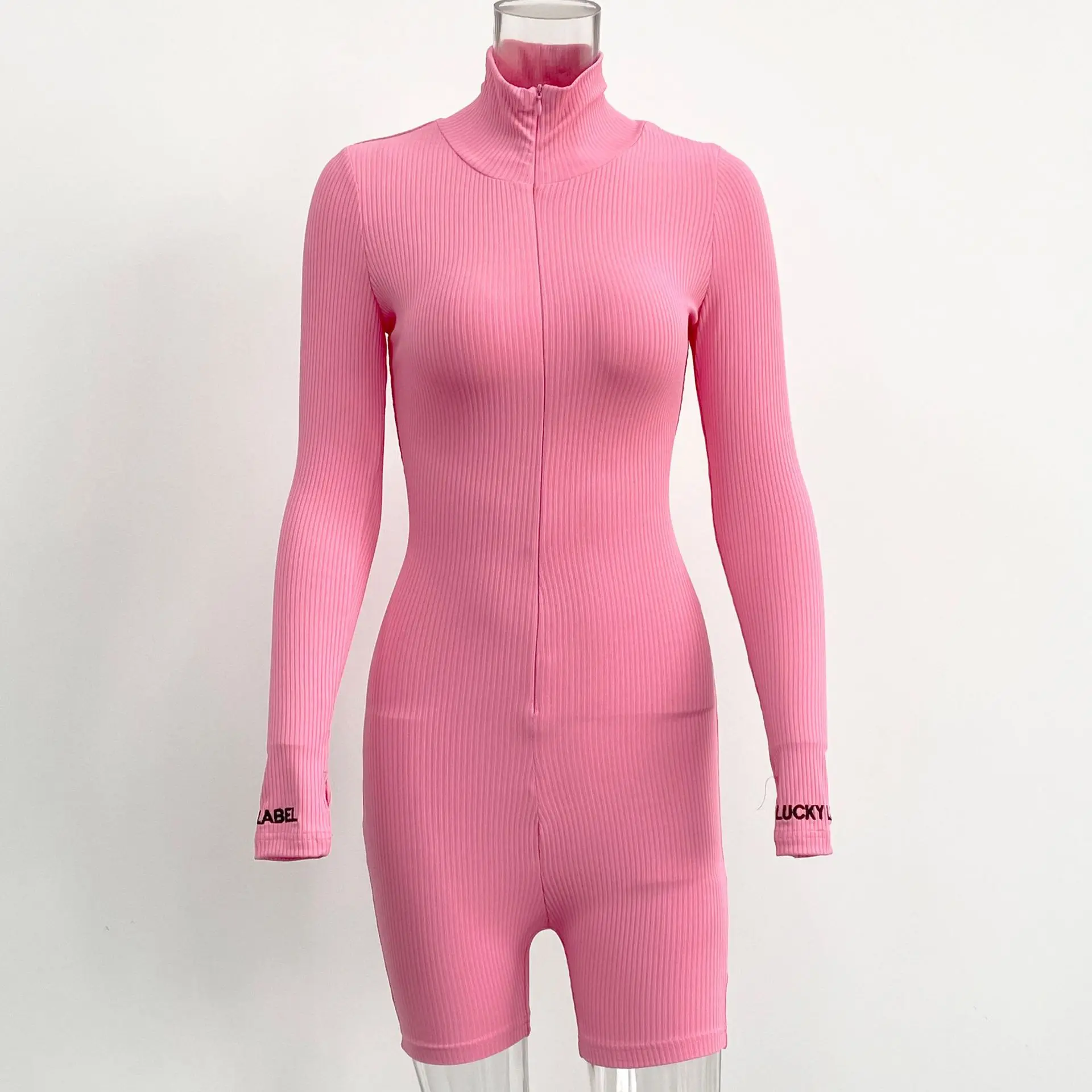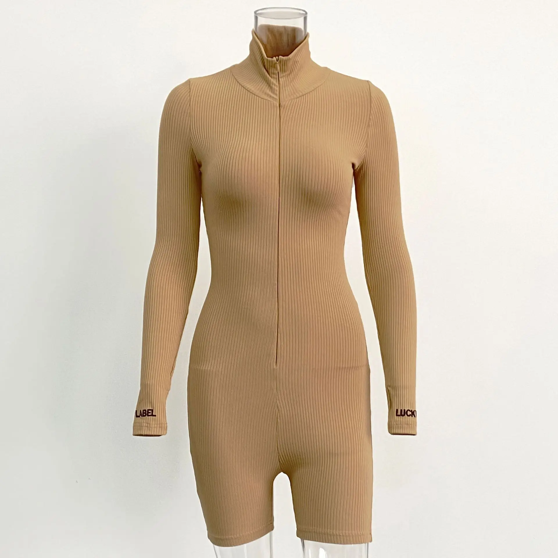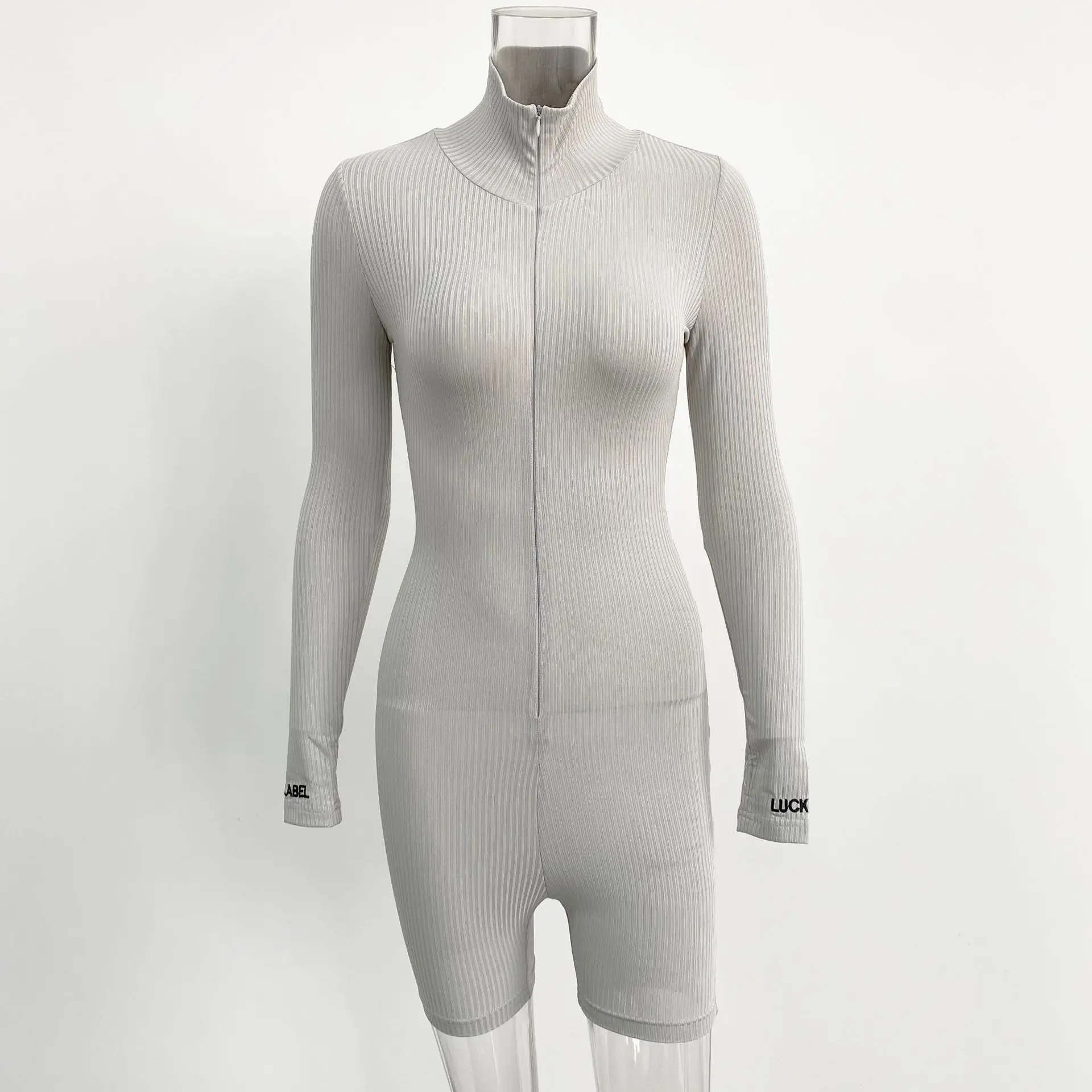 Комбинезон с длинными рукавами и высоким воротником на молнии, с вышитыми буквами, простой и стильный.