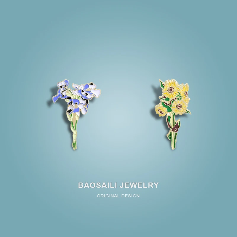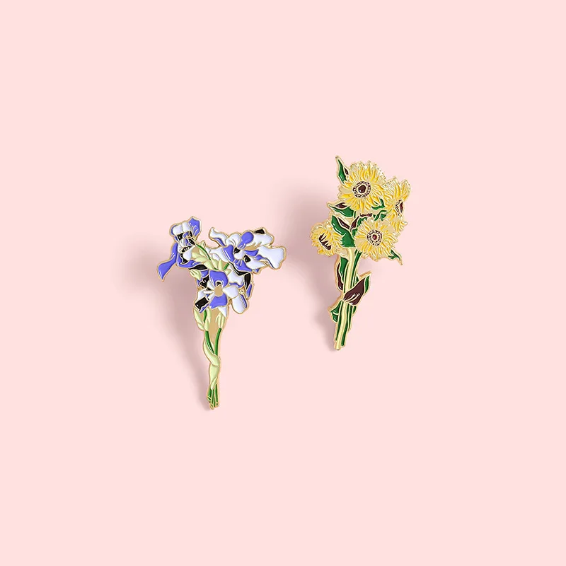 LXJERY Ван Гог Картина маслом мультфильма Pin Ирисы подсолнухи Брош...