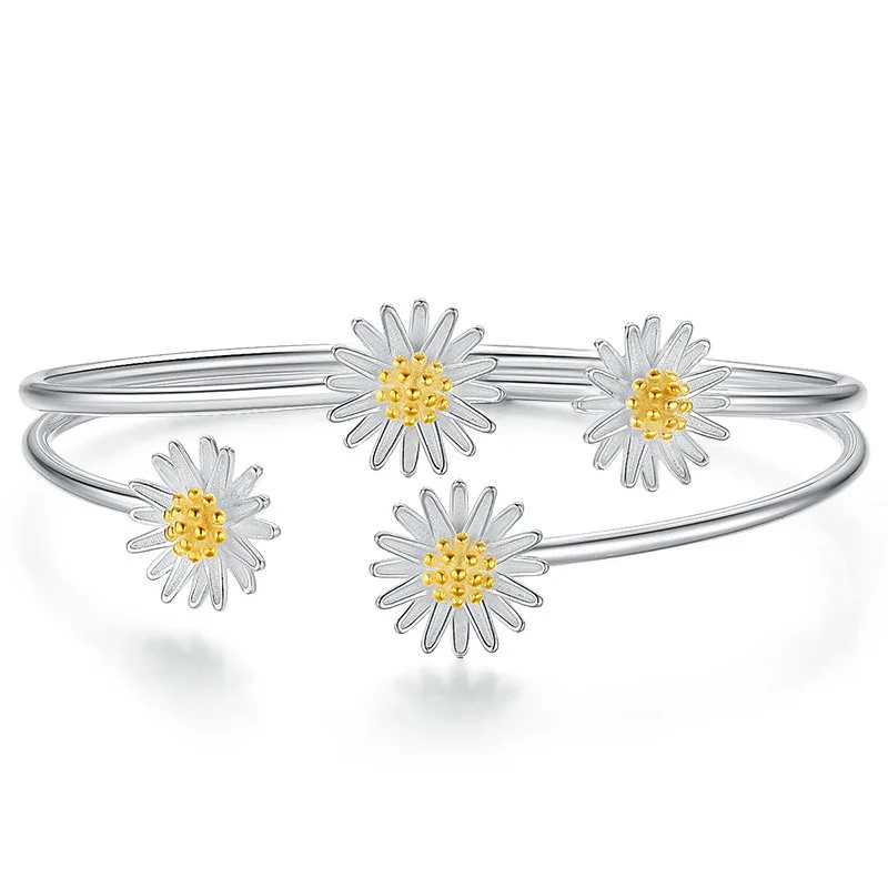 Женский Регулируемый Браслет-манжета из серебра 925 пробы с цветком Маргаритки