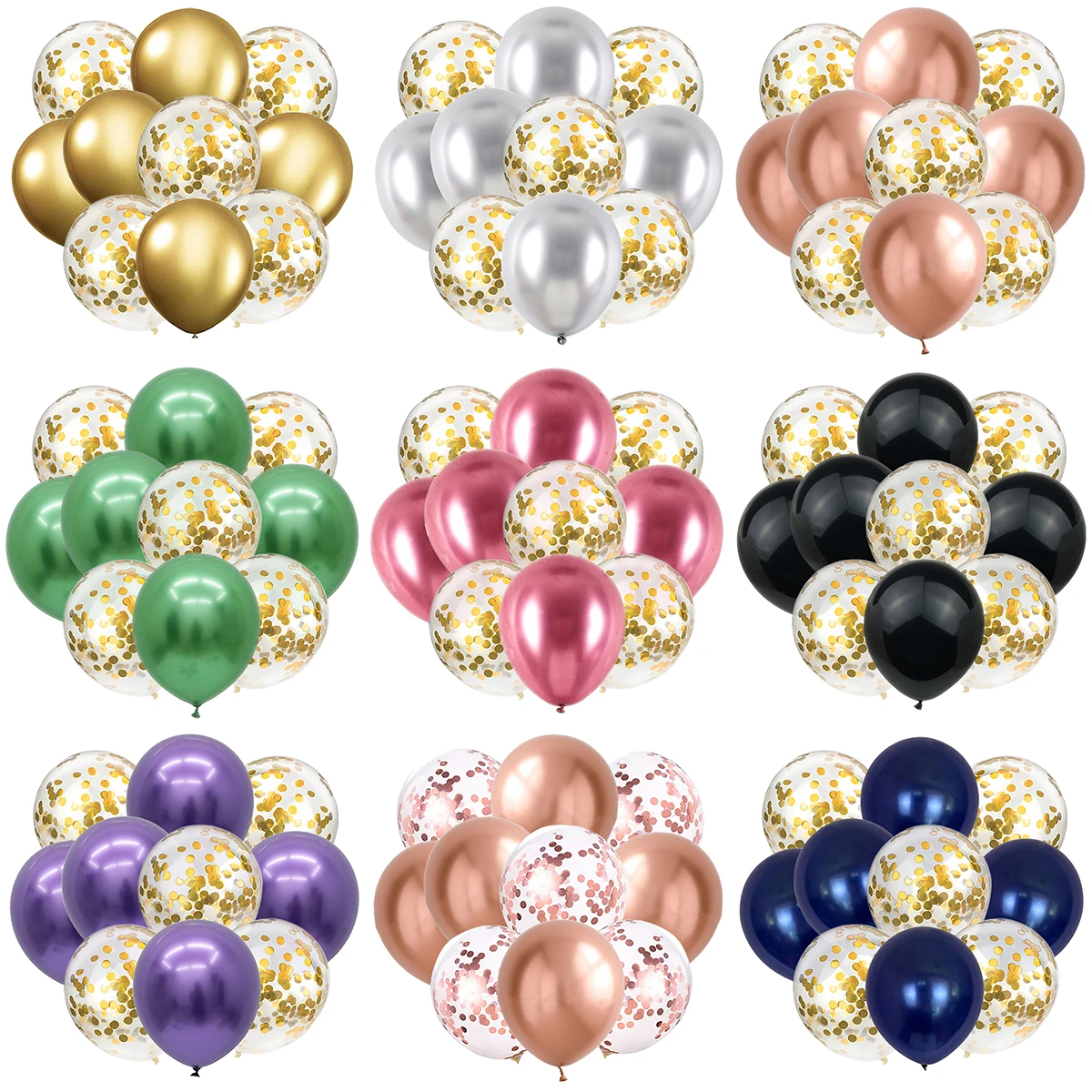 Шары воздушные латексные с конфетти, золотистыесеребристые, 10 шт.