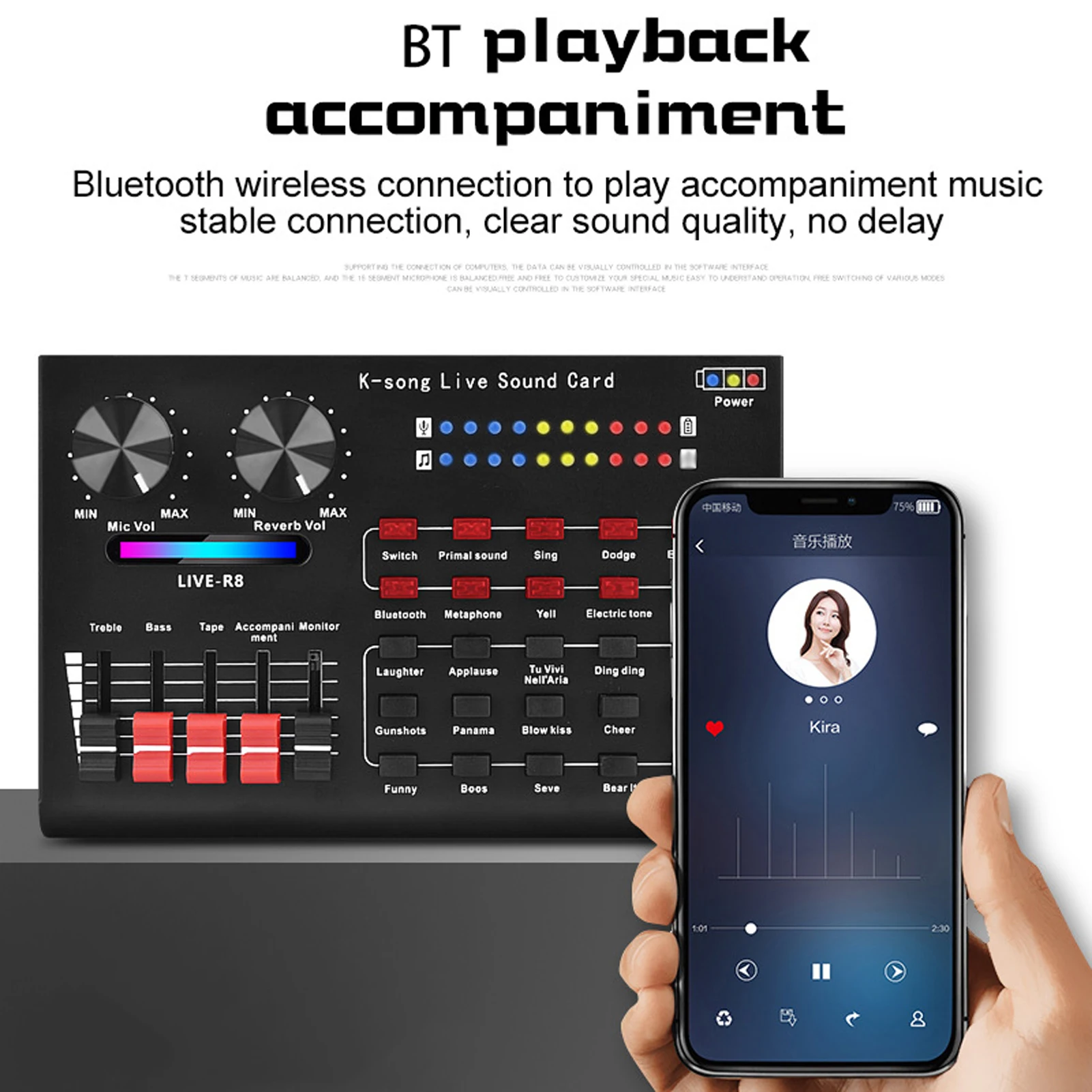 R8 плата звукового миксера для звуковой карты в реальном времени, многофункциональные звуковые эффекты, звуковой миксер, оборудование для пения