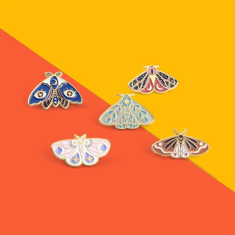 Брошь в форме бабочки, мотылька, металлическая, с насекомыми