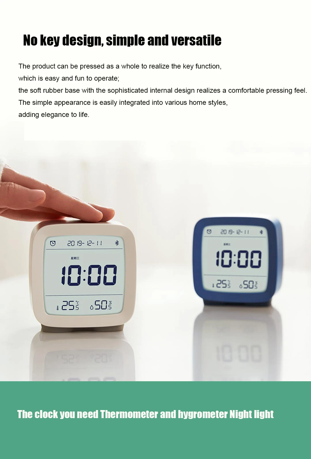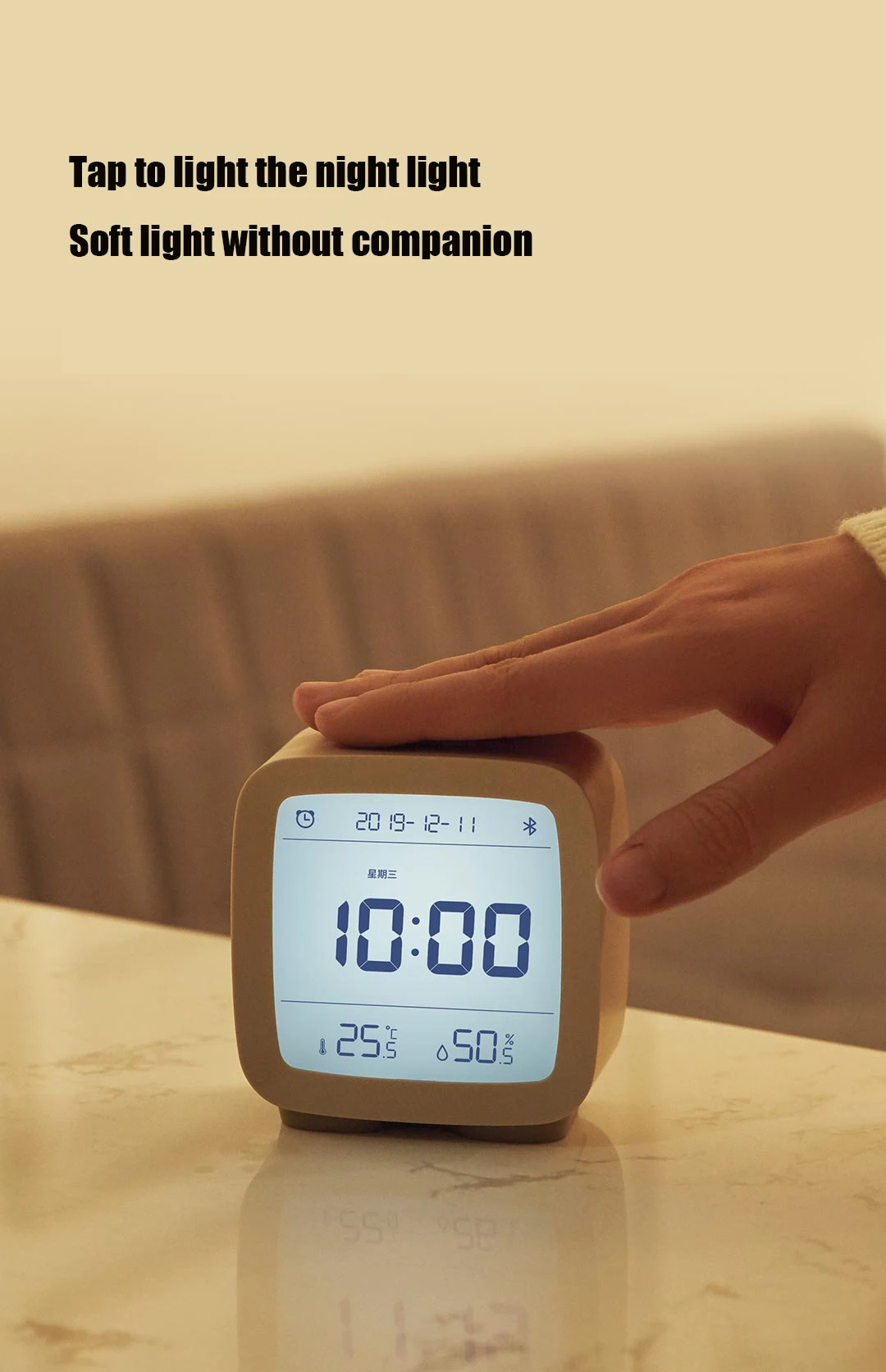 Bluetooth-будильник Xiaomi Qingping три в одном, контроль температуры и влажности, функция ночного освещения Mijia