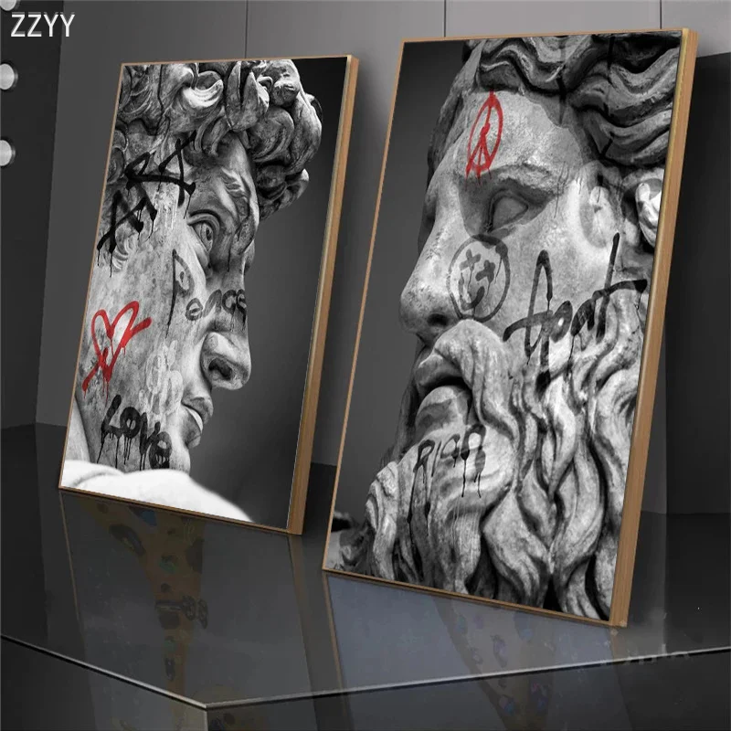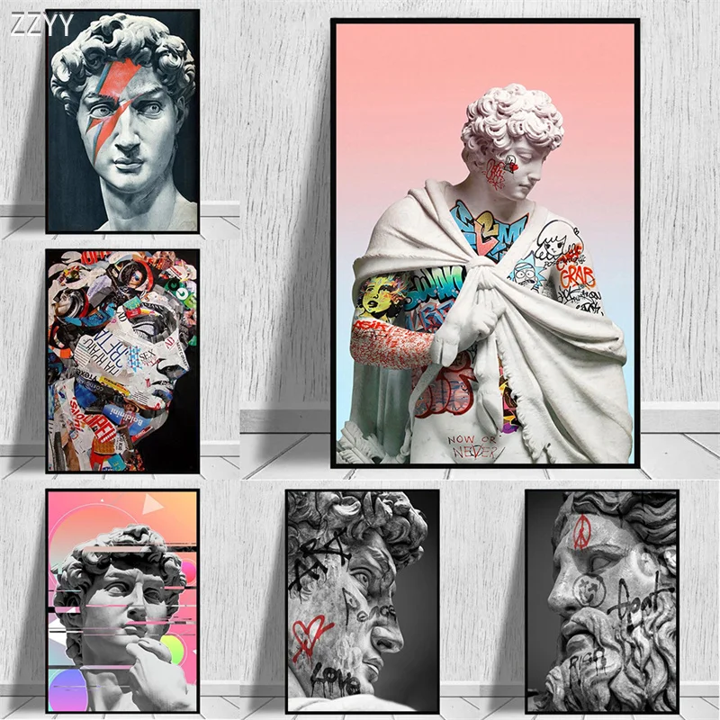 Настенное искусство голова Давида, скульптура на холсте, скульптура Давида, граффити, художественный плакат и печать для гостиной, домашний декор, картины