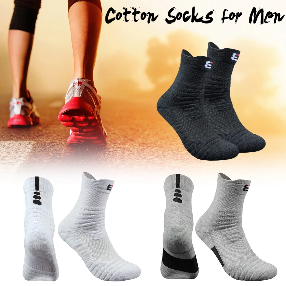Мужские хлопковые теннисные носки с утолщенным низом, профессиональные спортивные носки средней посадки для бега на открытом воздухе