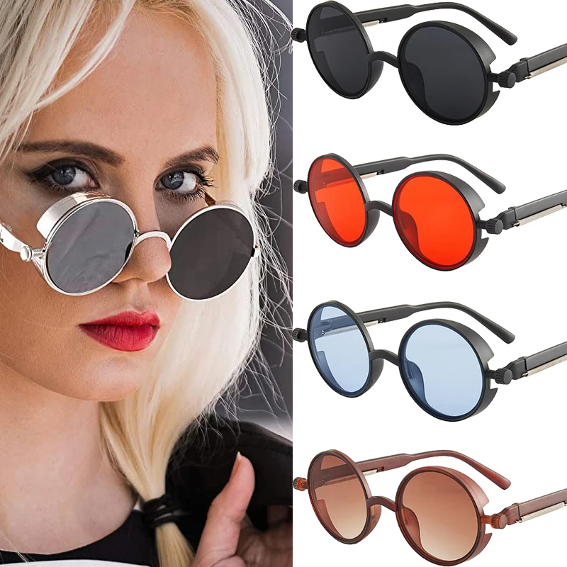 Солнцезащитные очки для мужчин и женщин, винтажные готические кругл...