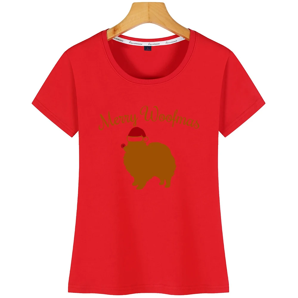 Футболка женская, белая, с надписью Merry Woofmas Dog Santa Hat померанский шпиц, Рождественский юмор