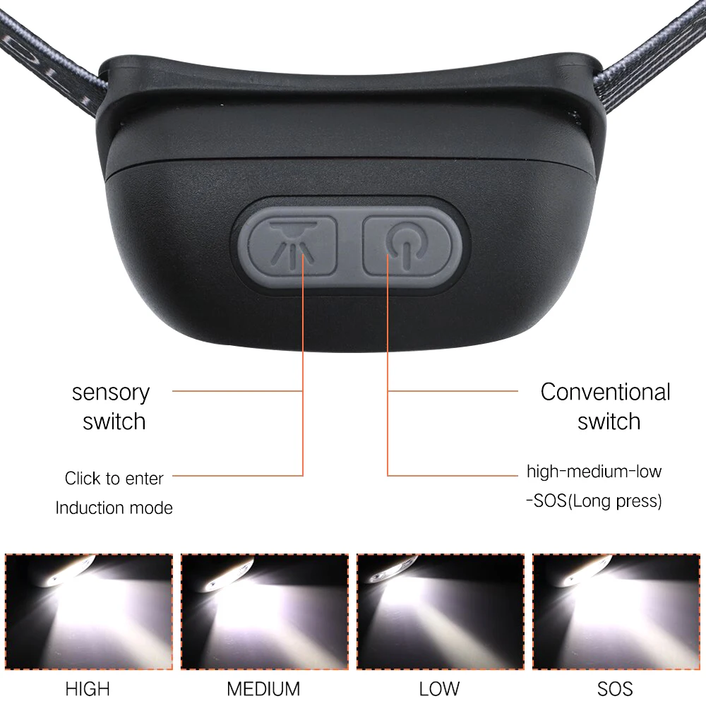 Шестерня: 4 шестерни s + индукция (главный переключатель: сильный, средний, слабый, длинный пресс для входа SOS, индукционный переключатель: волна вверх и вниз 10 см перед фарой, вы можете включить или выключить его)