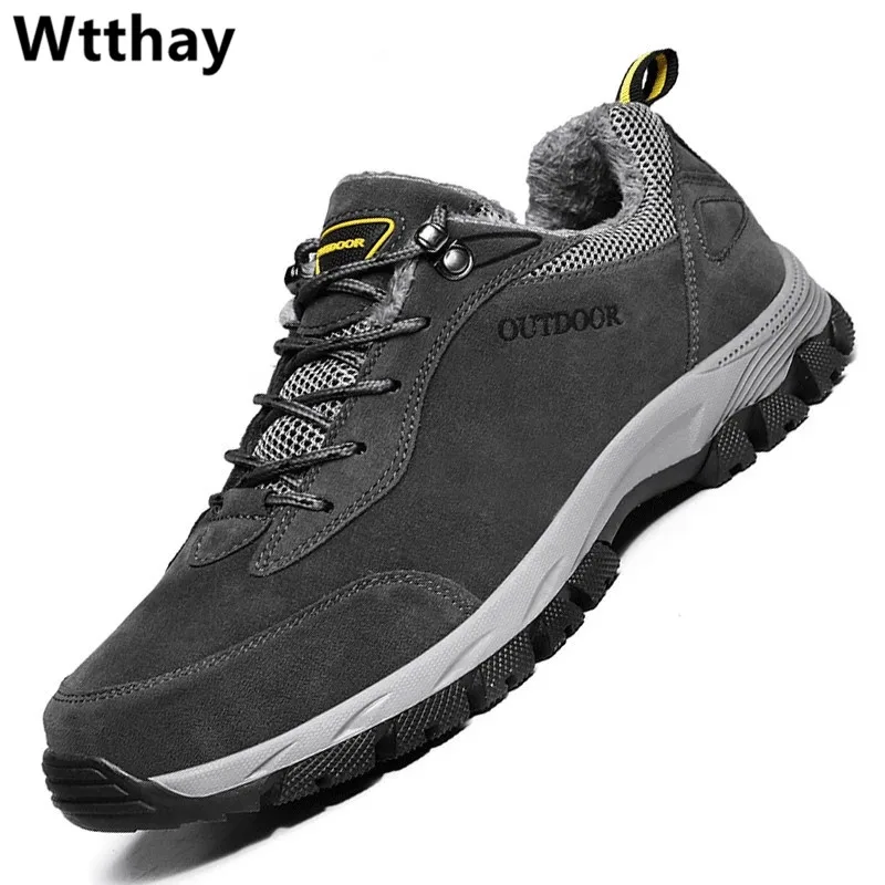 Зимние мужские ботинки wtsaid, уличные теплые меховые зимние ботинк...