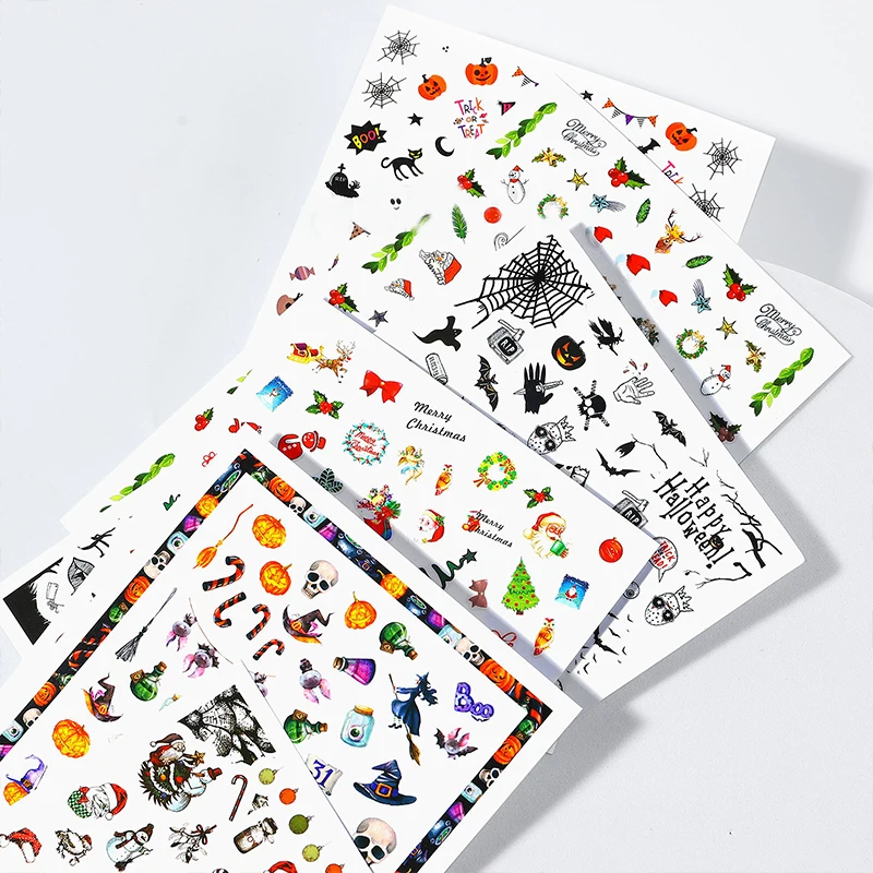Новые наклейки для ногтей на Хэллоуин, Рождество, наклейки для ногт...