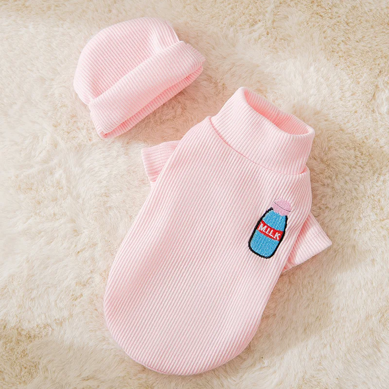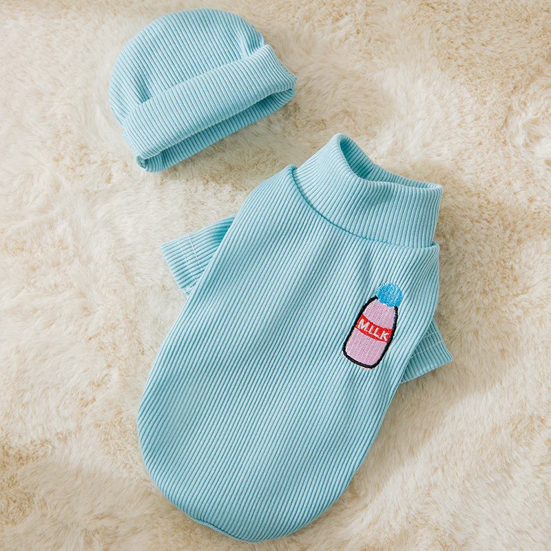 Осенняя Облегающая рубашка для собак, Детская Бутылочка с вышивкой, шапка, костюм с двумя ногами, одежда для кошек, жилет для собак, одежда, шапка