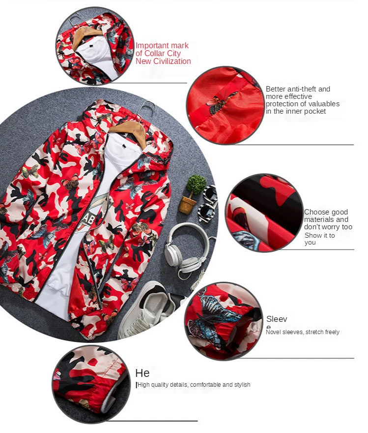 2021 Весенняя Мужская Уличная Повседневная камуфляжная худи с бабоч...