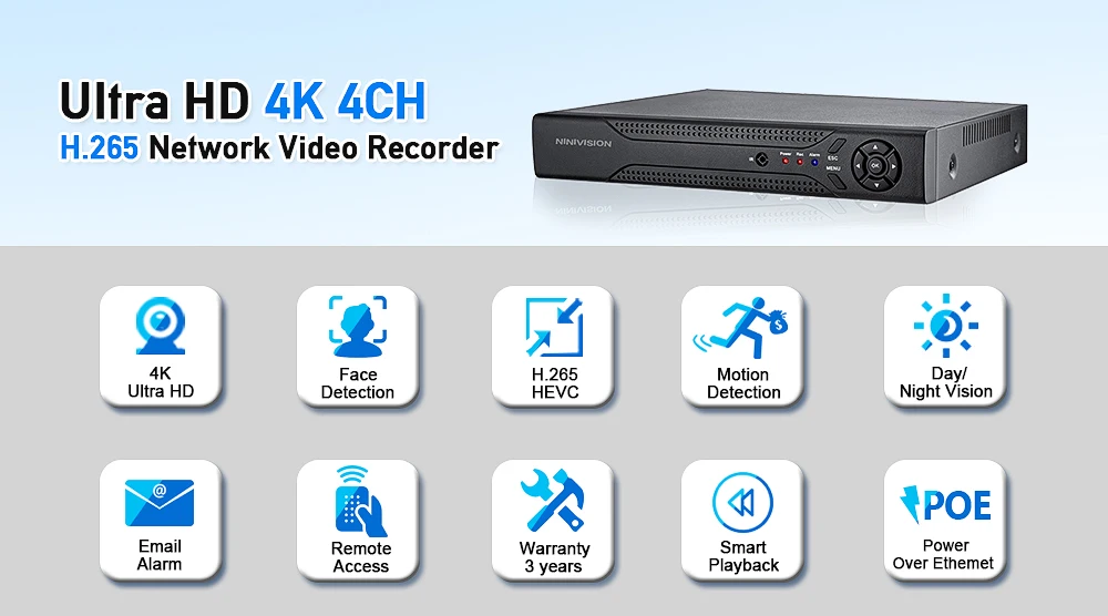 POE NVR More FeaturesFace Record,Face Detection,Face Playback