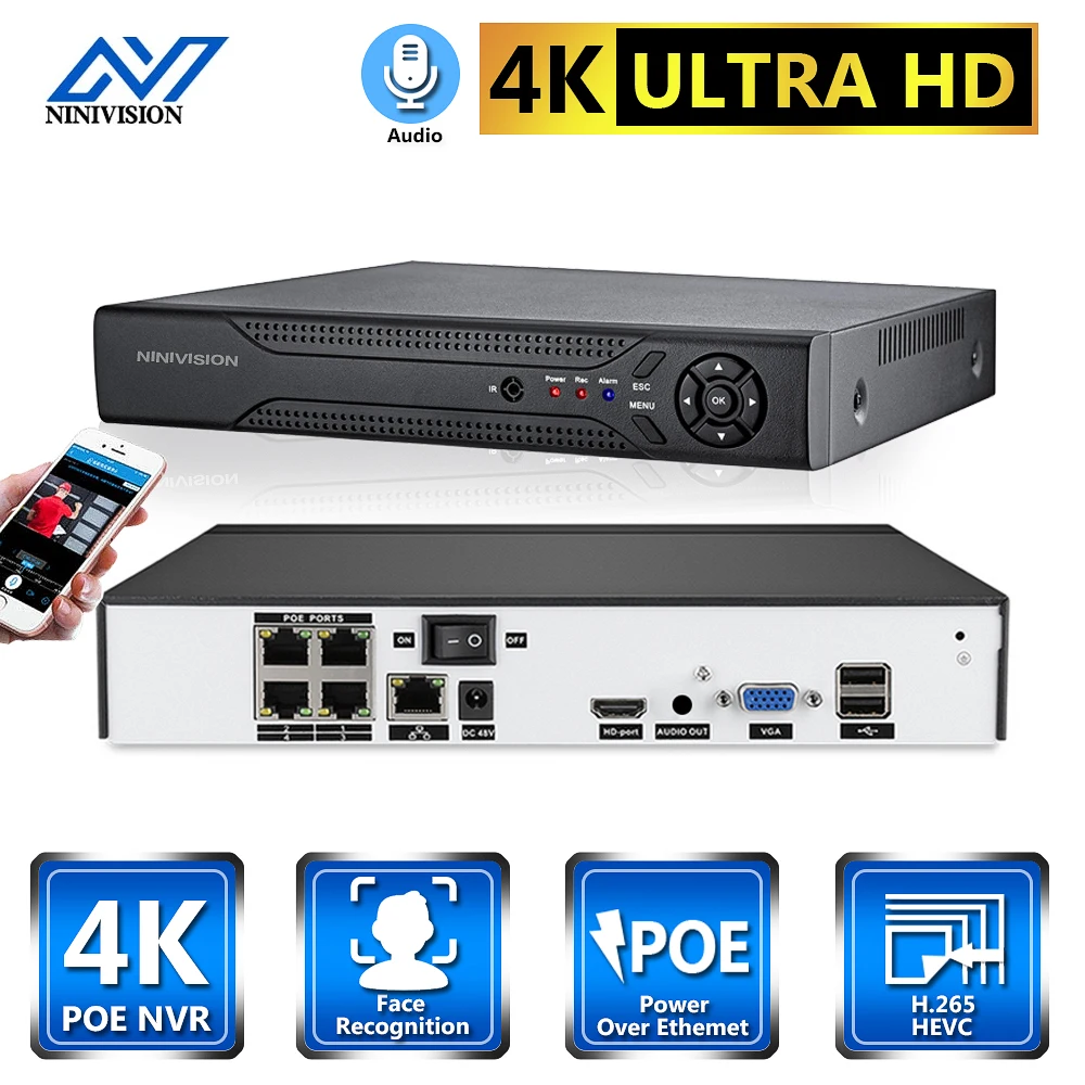 Сетевой видеорегистратор NINIVISION H.265 4K POE NVR, система видеонаблюдения, 4 МП, 5 МП, 8 Мп, 4 канала