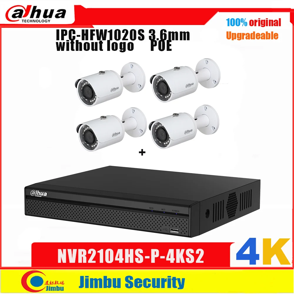 Система видеонаблюдения Dahua IP NVR, 4 канала, 4K, IP-камеры NVR2104HS-P-4KS2 и 1 МП, 4 шт., IPC-HFW1020S POE NVR