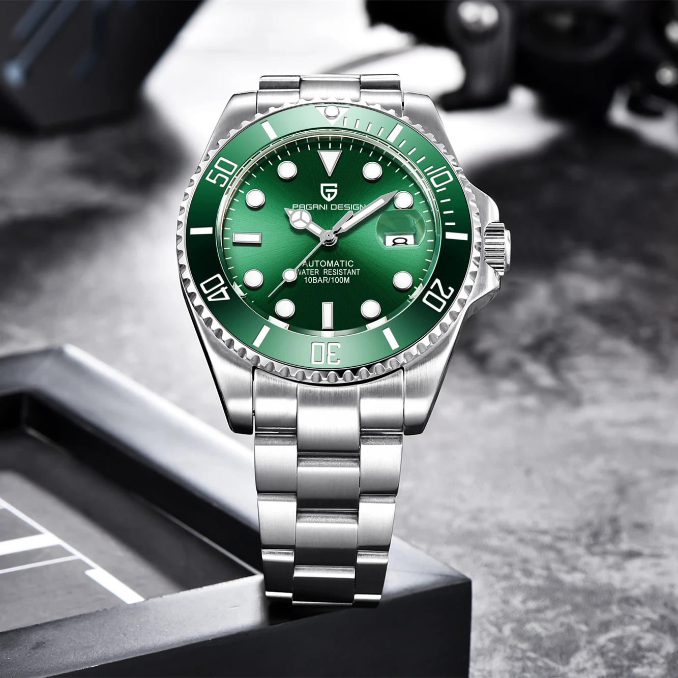 Часы наручные Pagani Мужские автоматические, модные деловые механические Роскошные светящиеся с сапфировым стеклом, из нержавеющей стали