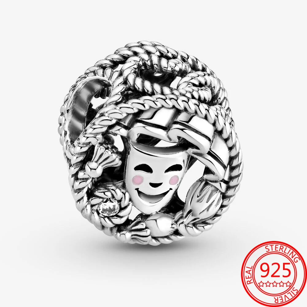 Подлинная искусственная Серебряная комедия и трагедия, кинотеатральная маска, бусины, очаровательные фирменные браслеты, самодельные Украшения для девочек