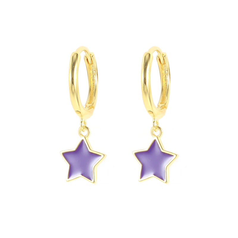 Женские серьги-капельки из серебра 925 пробы с фиолетовой звездой и Луной