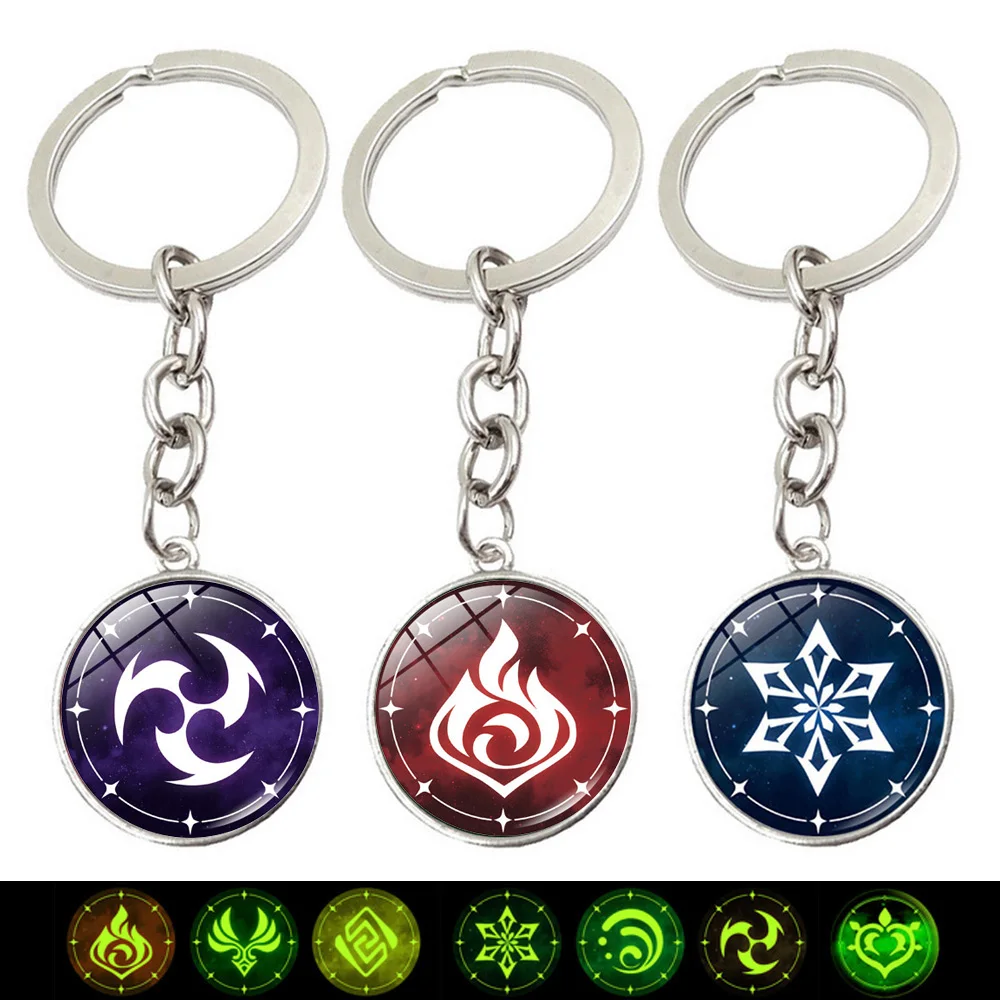 Игровой ударопрочный брелок Genshin для автомобильных ключей светящийся аниме-элемент глаз Бога брелки Genshin Подвески металлический брелок для ключей для женщин