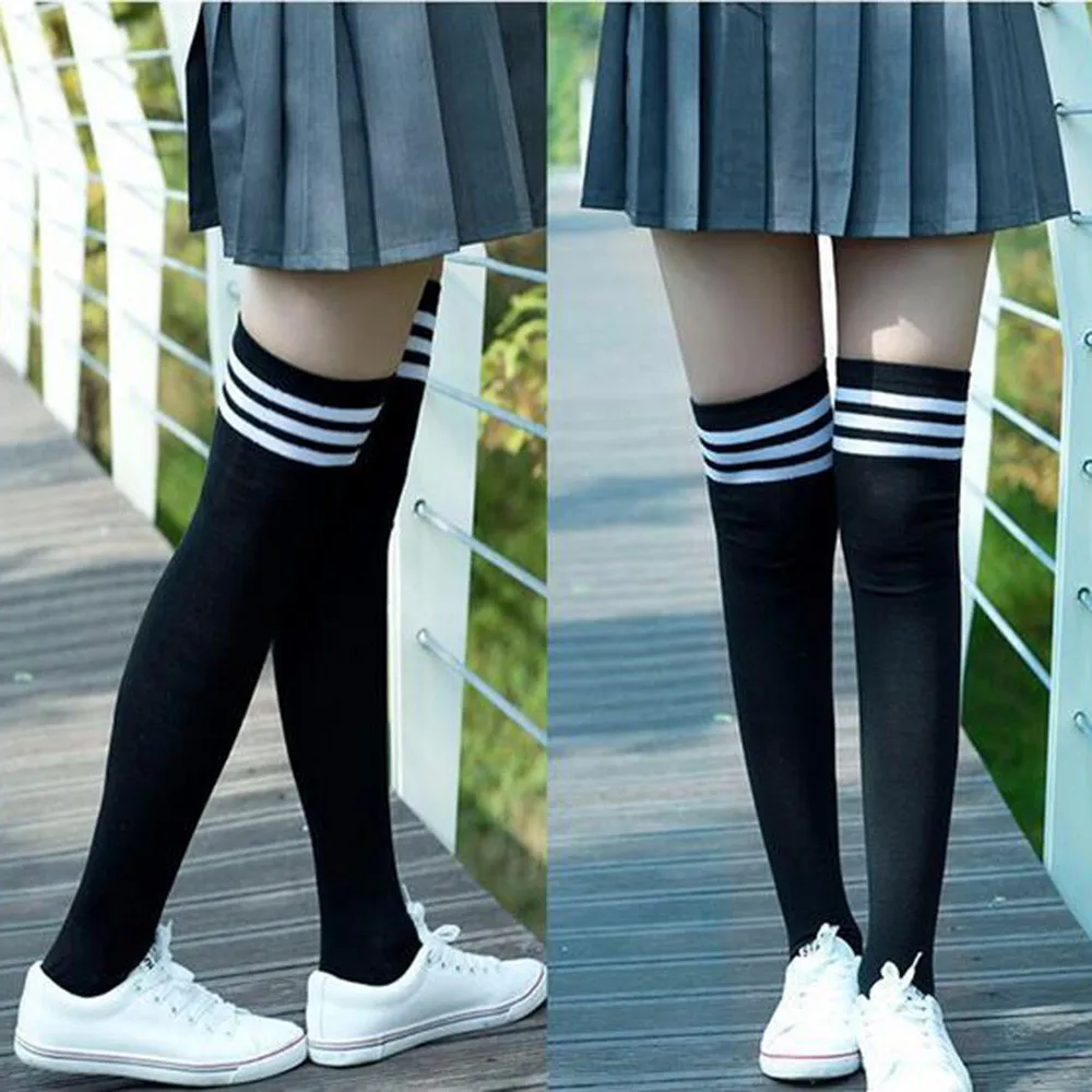 Модные чулки до бедра выше колена для девушек женщин студентов поло...