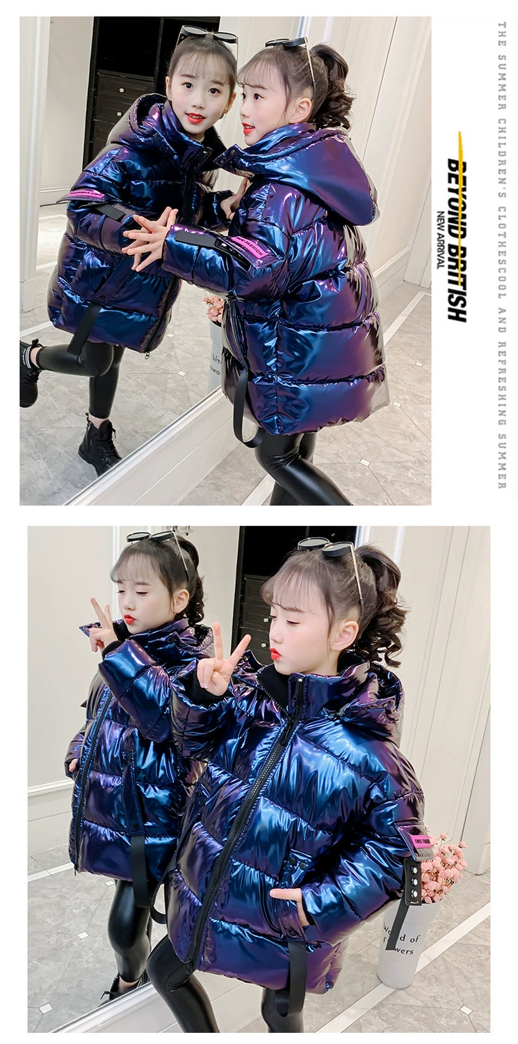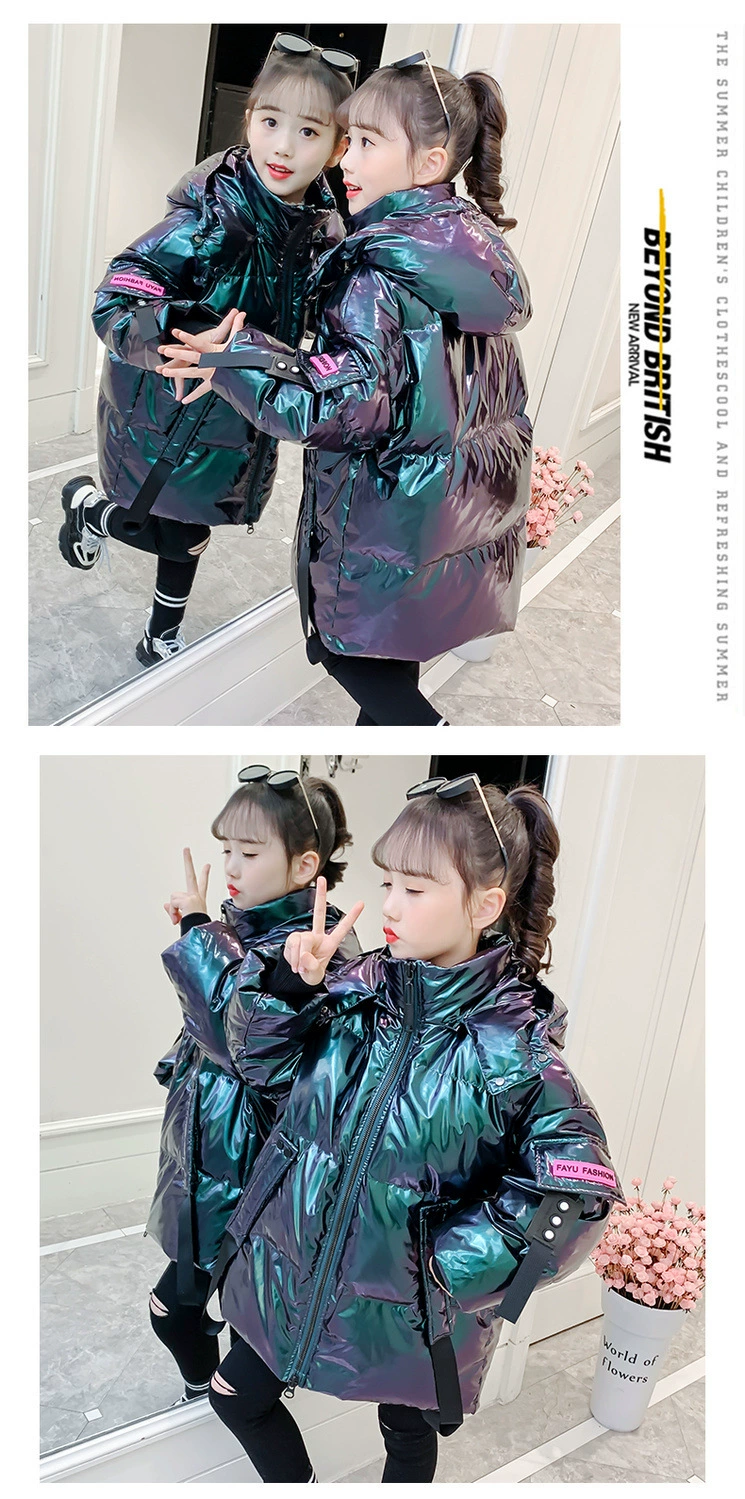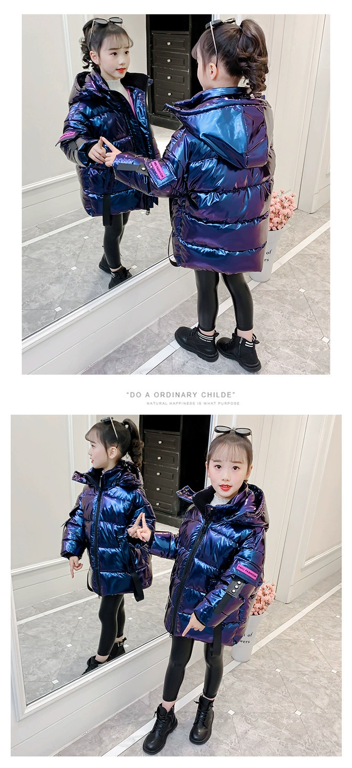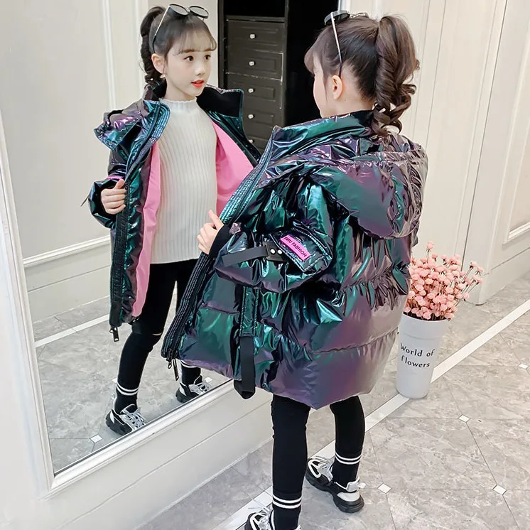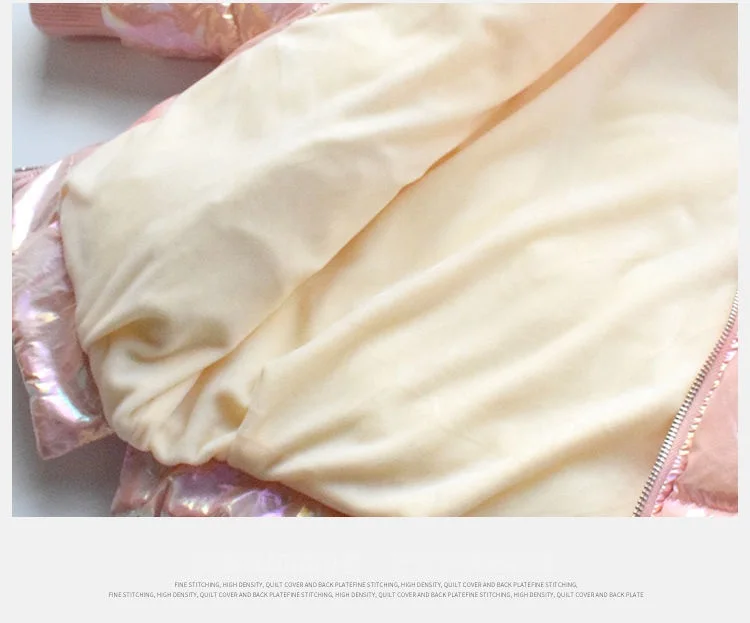 Глянцевый Детский пуховик Модная одежда с буквенным принтом на хлопковой подкладке для мальчиков и девочек, легкая одежда Детские пальто с капюшоном