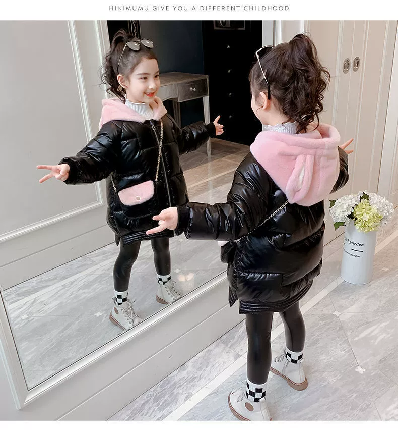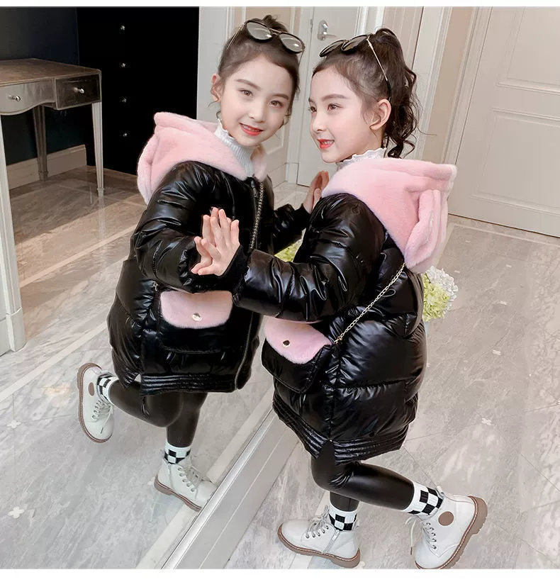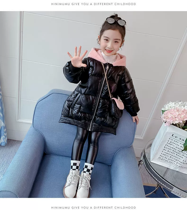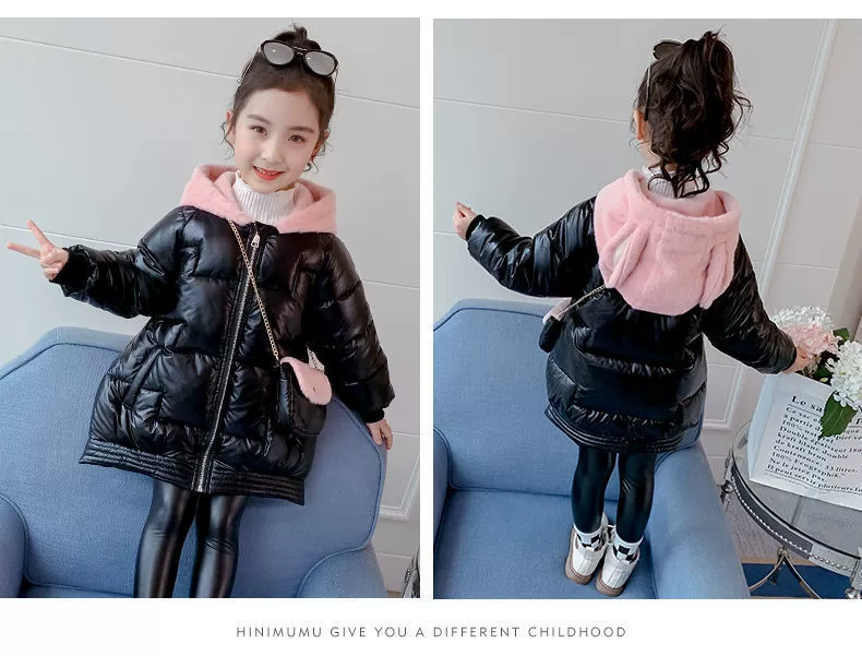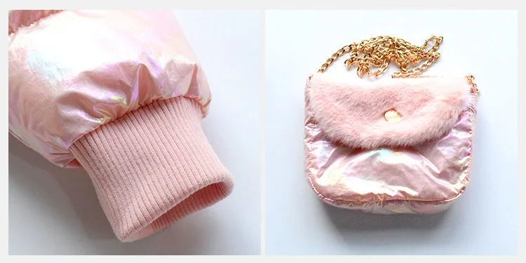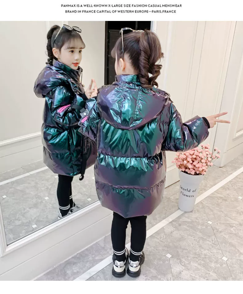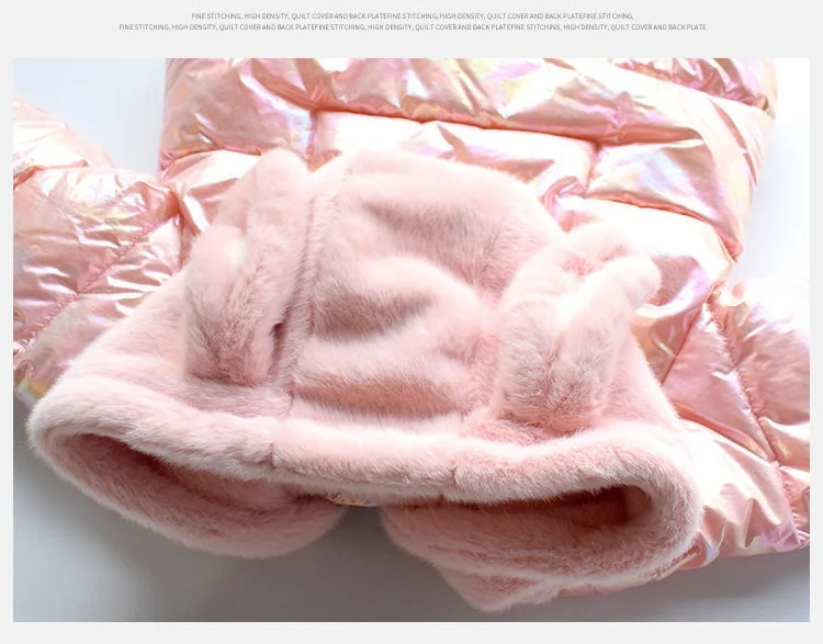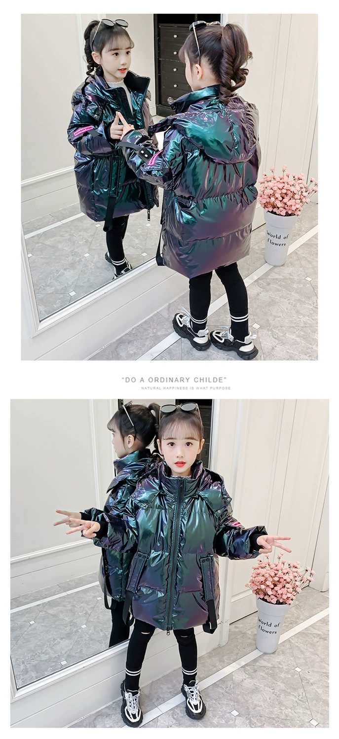Глянцевый Детский пуховик Модная одежда с буквенным принтом на хлопковой подкладке для мальчиков и девочек, легкая одежда Детские пальто с капюшоном