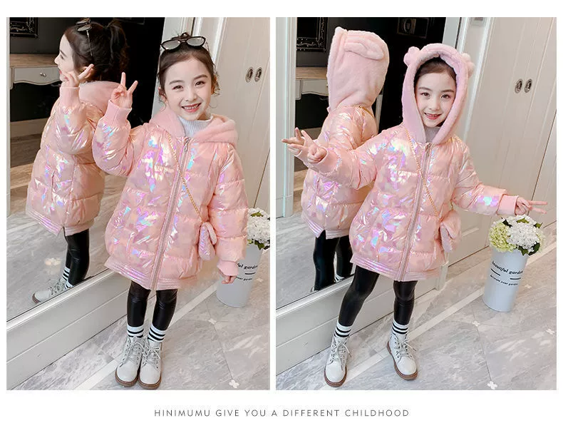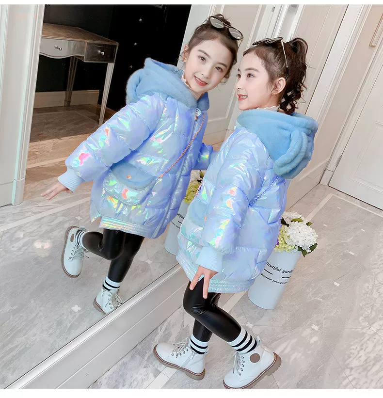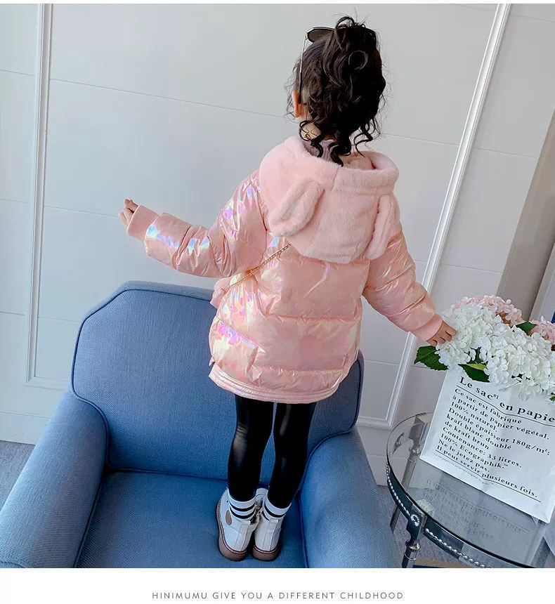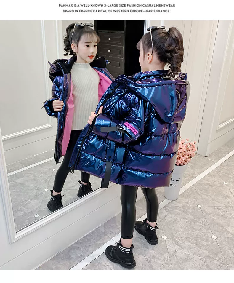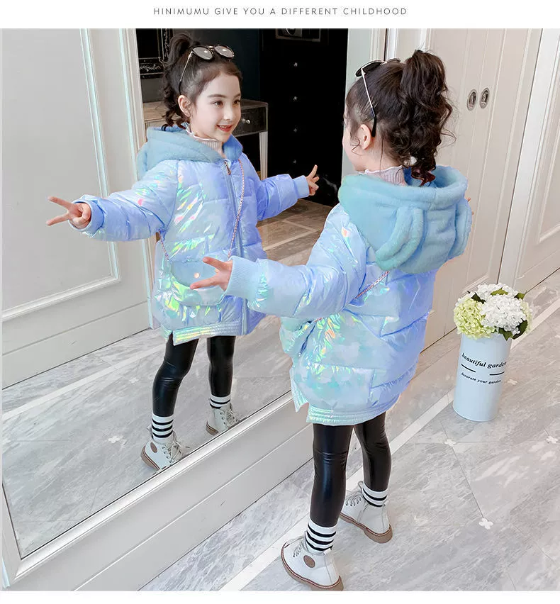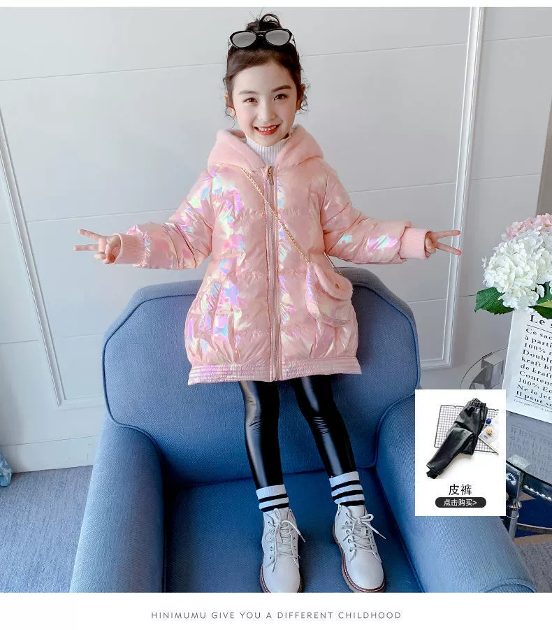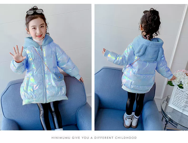 Глянцевый Детский пуховик Модная одежда с буквенным принтом на хлопковой подкладке для мальчиков и девочек, легкая одежда Детские пальто с капюшоном