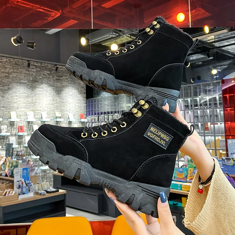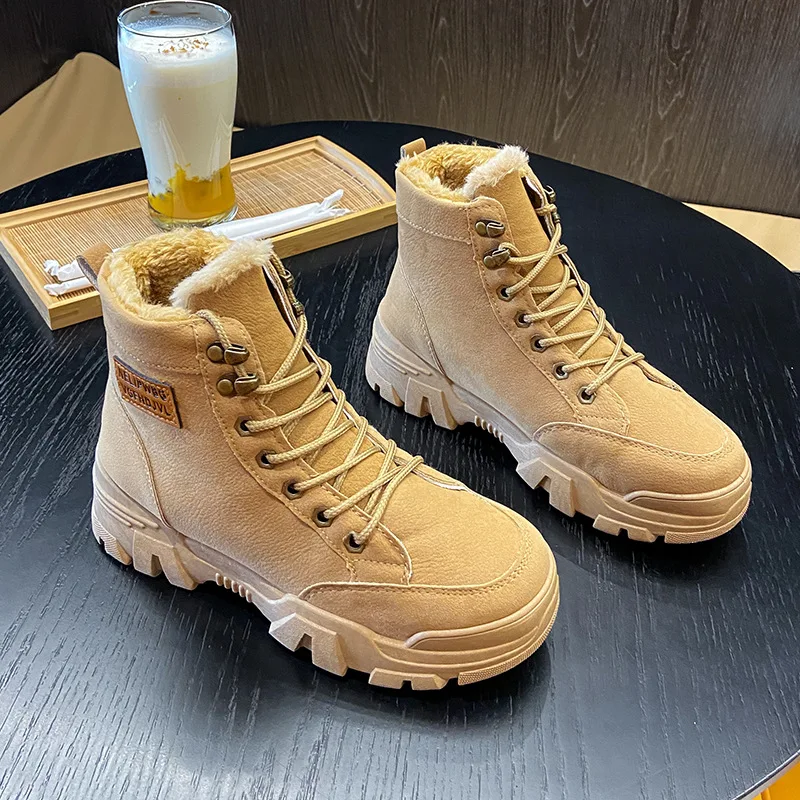 Женские зимние ботинки, бежевые плюшевые ботинки на меху, повседневные Ботинки, Ботильоны, платформа, толстая подошва, шнуровка, зимняя обувь, 998