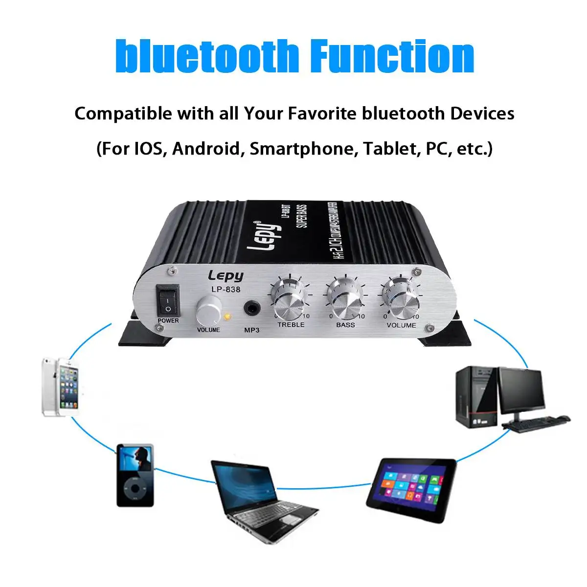 Цифровой автомобильный усилитель мощности 838BT 2.1CH 2x300 Вт bluetooth Hi-Fi стерео усилитель басов аудио поддержка сабвуфера автомобильный домашний бас-аудио