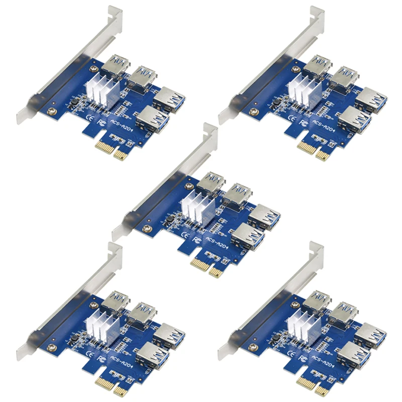 Переходник PCI-E-PCI-E с 1 на 4 порта PCI-Express слот 1x To16x USB3.0 Riser Card Extender конвертер PCI-E для майнинга BTC Miner