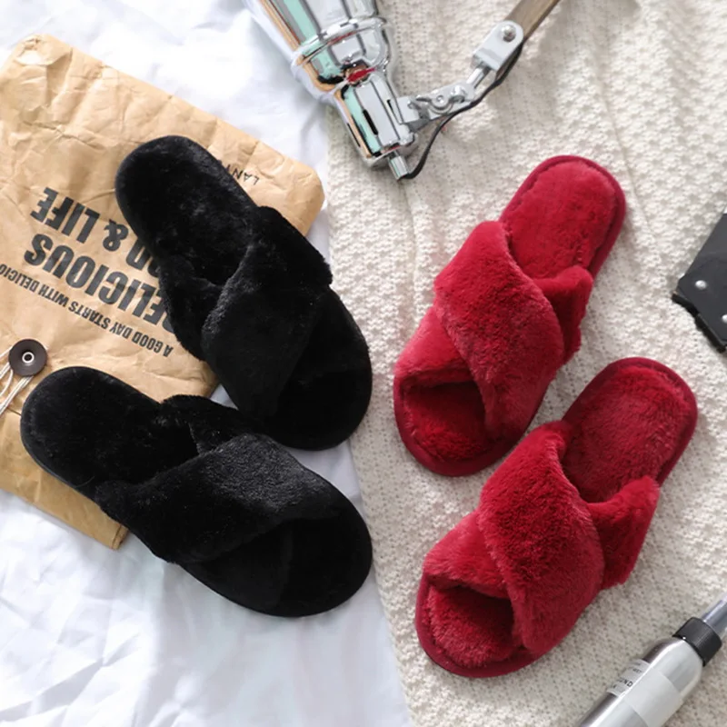 women's flip flops 2021furry plush slippers women