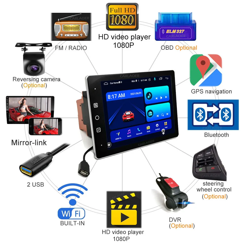 Автомагнитола на Android 10, мультимедийный плеер с HD-экраном и функцией поворота, Подходит для Nissan, Toyota, Kia, Hyundai, Lada, vw, Honda, типоразмер 2DIN