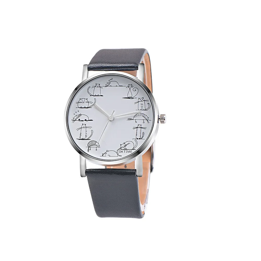 Женские Аналоговые кварцевые часы с изображением кошки из мультфильма