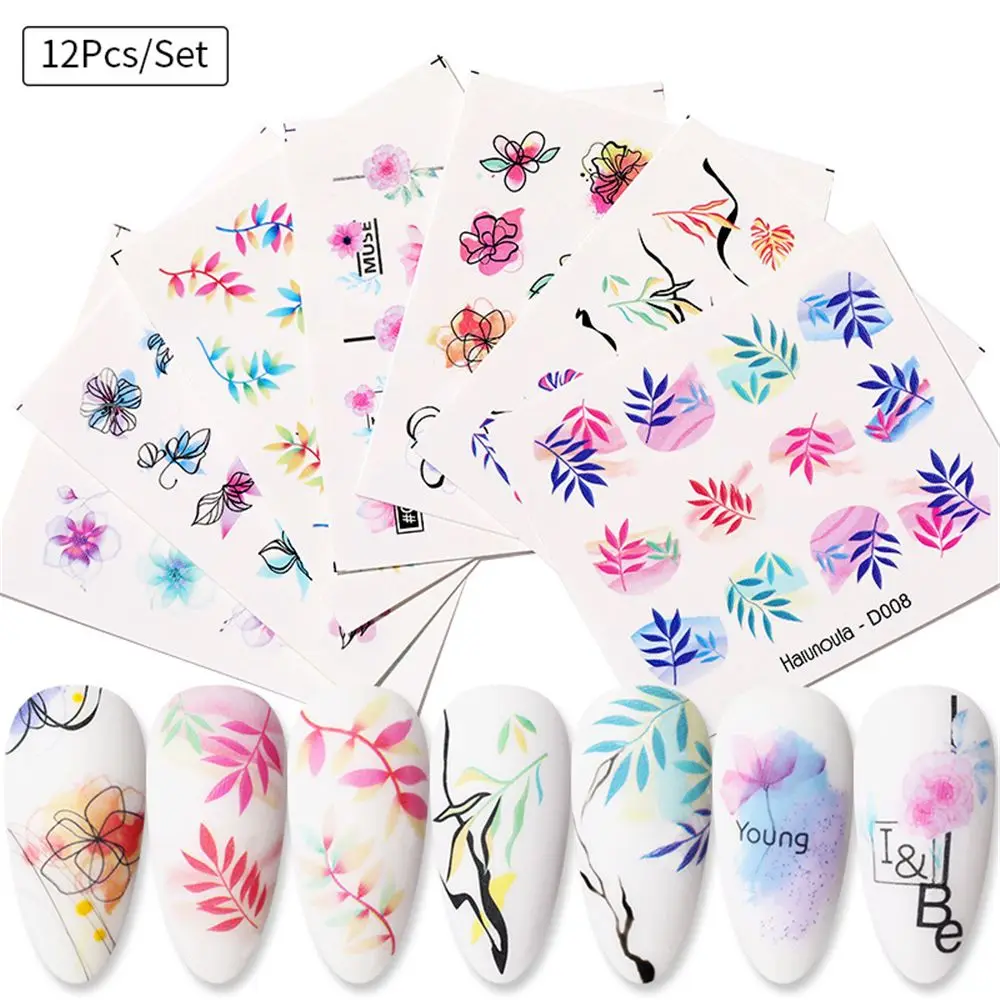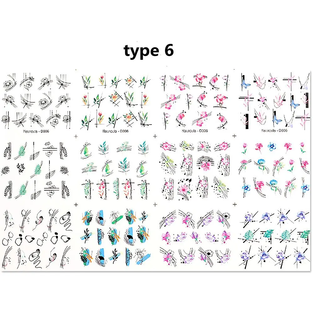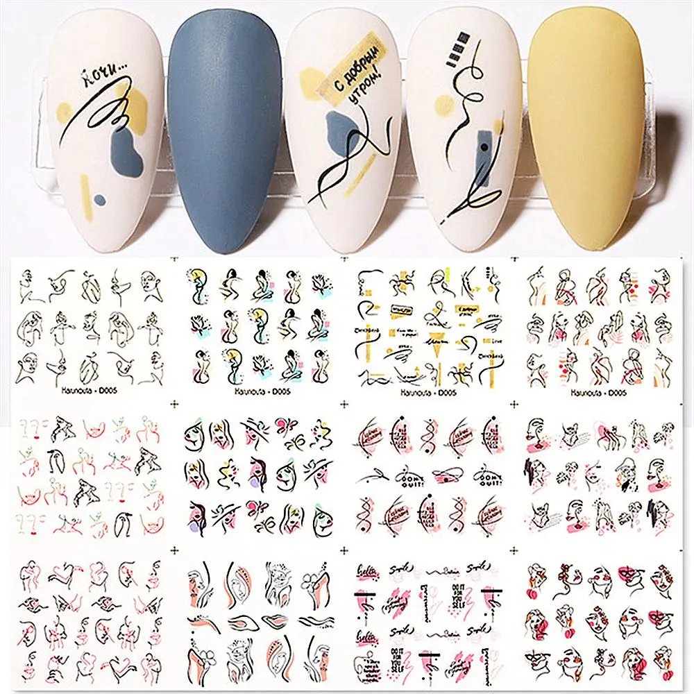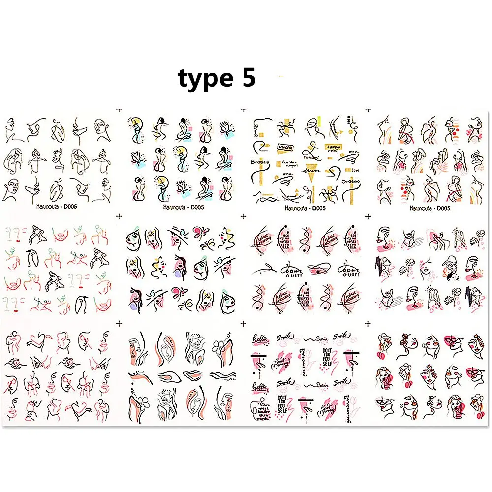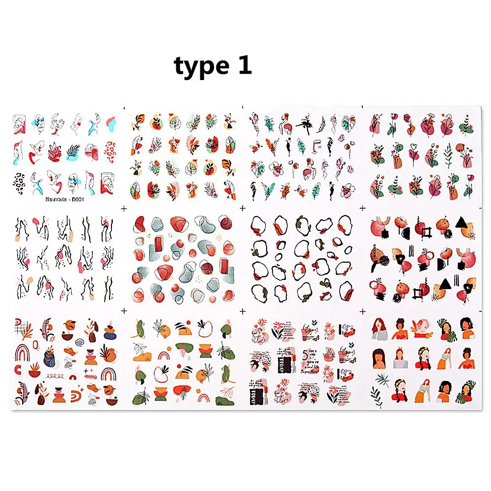 12 видов стилей ногтей Водные Наклейки абстрактные леди уход за кож...