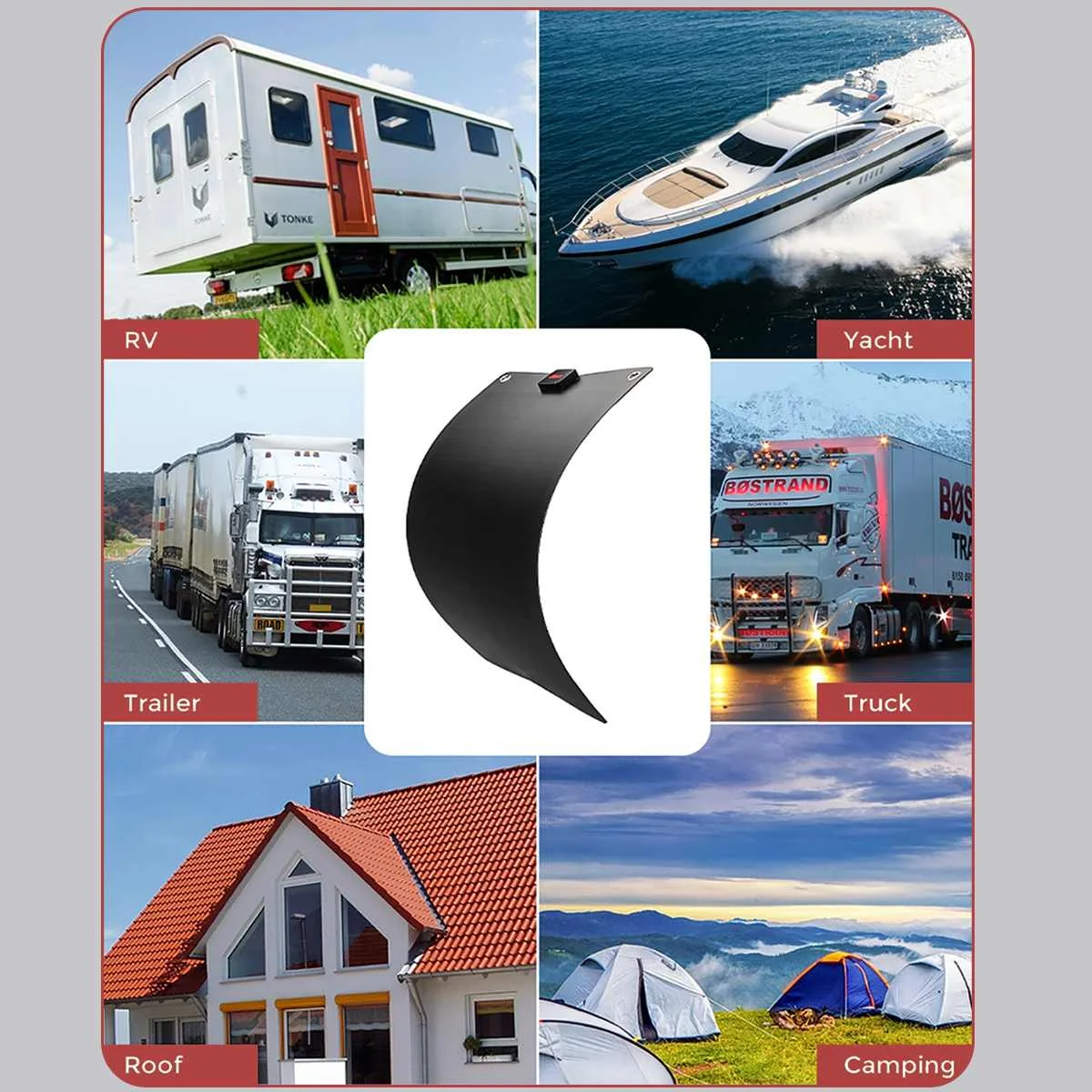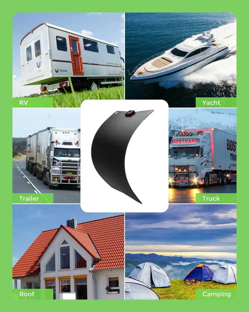 Особенности1. Превосходные монокристаллические солнечные элементы: уменьшают потери энергии на светильник, повышают эффективность преобразования солнечной энергии.2. Высококачественная ПЭТ-панель: высокая термостойкость, Пыленепроницаемость и водонепроницаемость, легко справляется со всеми видами суровых условий.3. Выход постоянного тока и USB: удовлетворение потребностей различных устройств.4. Гибкий и легкий: легко переносить, устанавливать, вешать и снимать.5. Подходит для RV, яхты, прицепа, грузовика, крыши, кемпинга и т. д.