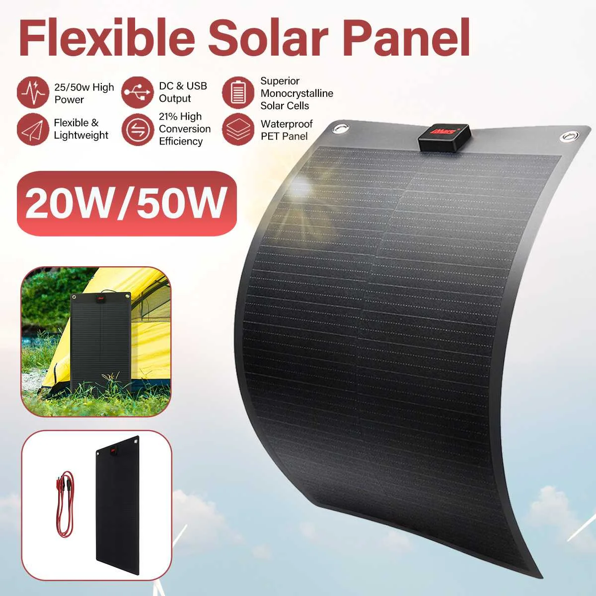 Портативная солнечная панель iMars на 25 Вт50 Вт 19 в ПЭТ, гибкое зарядное устройство для батарей с питанием от постоянного тока и выходом USB, комплект уличных панелей