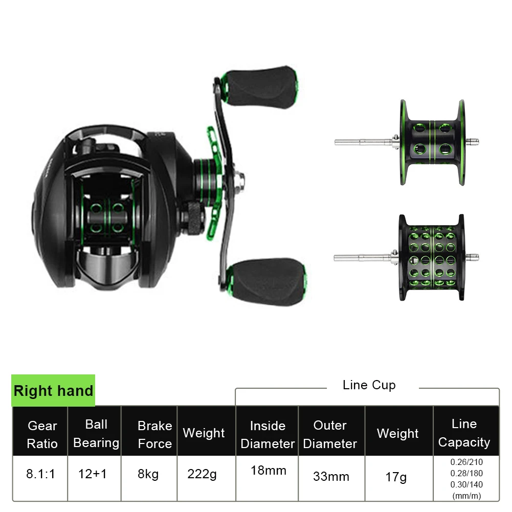 Катушка для заброса приманки для ловли окуня в соленой воде, свежая катушка, максимальное усилие Тяги 8 кг, Рыболовная катушка для ловли окуня, двойная металлическая катушка, рыболовная снасть