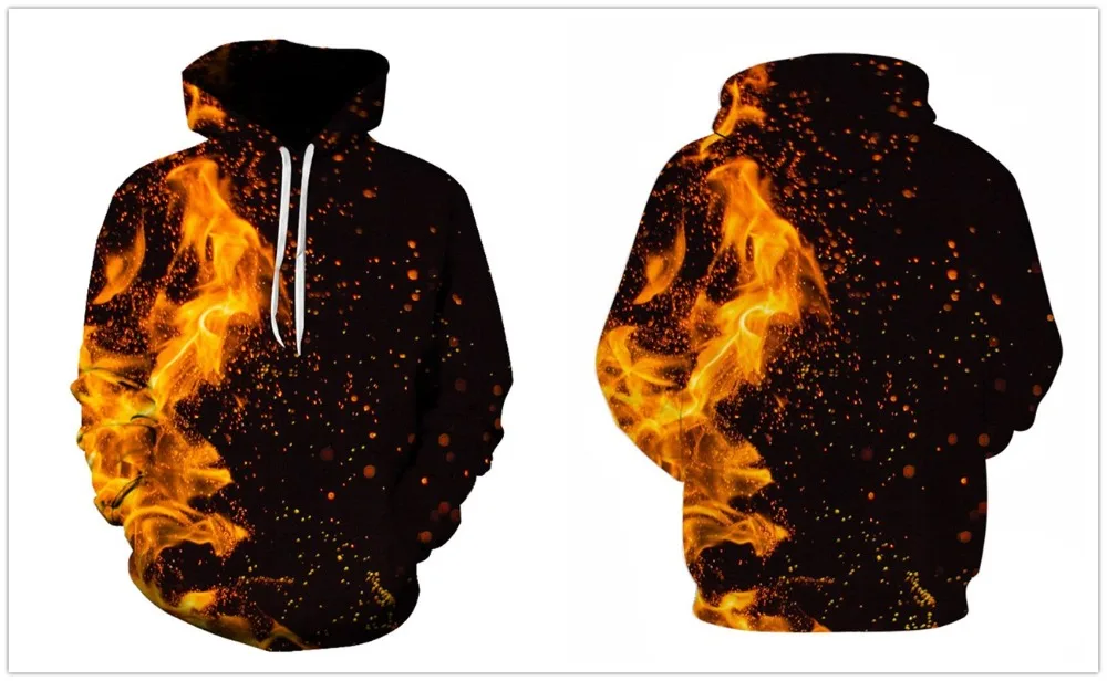 Новинка 2021, мужская толстовка с капюшоном с эффектом пламени, мод...