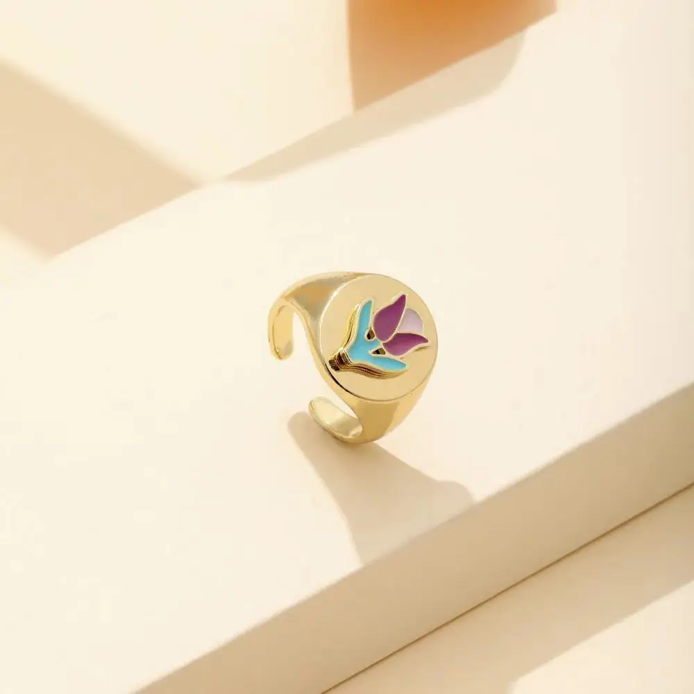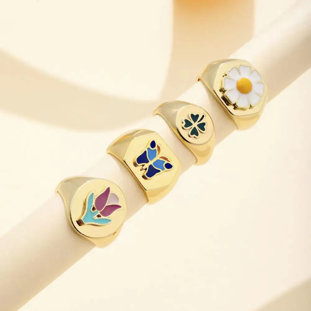 Модное кольцо с глазурованными маргаритками и тюльпаном, Женское кольцо в стиле панк с металлическим цветком клевера, золотого цвета, индивидуальное кольцо на указательный палец, Женское кольцо на хвост